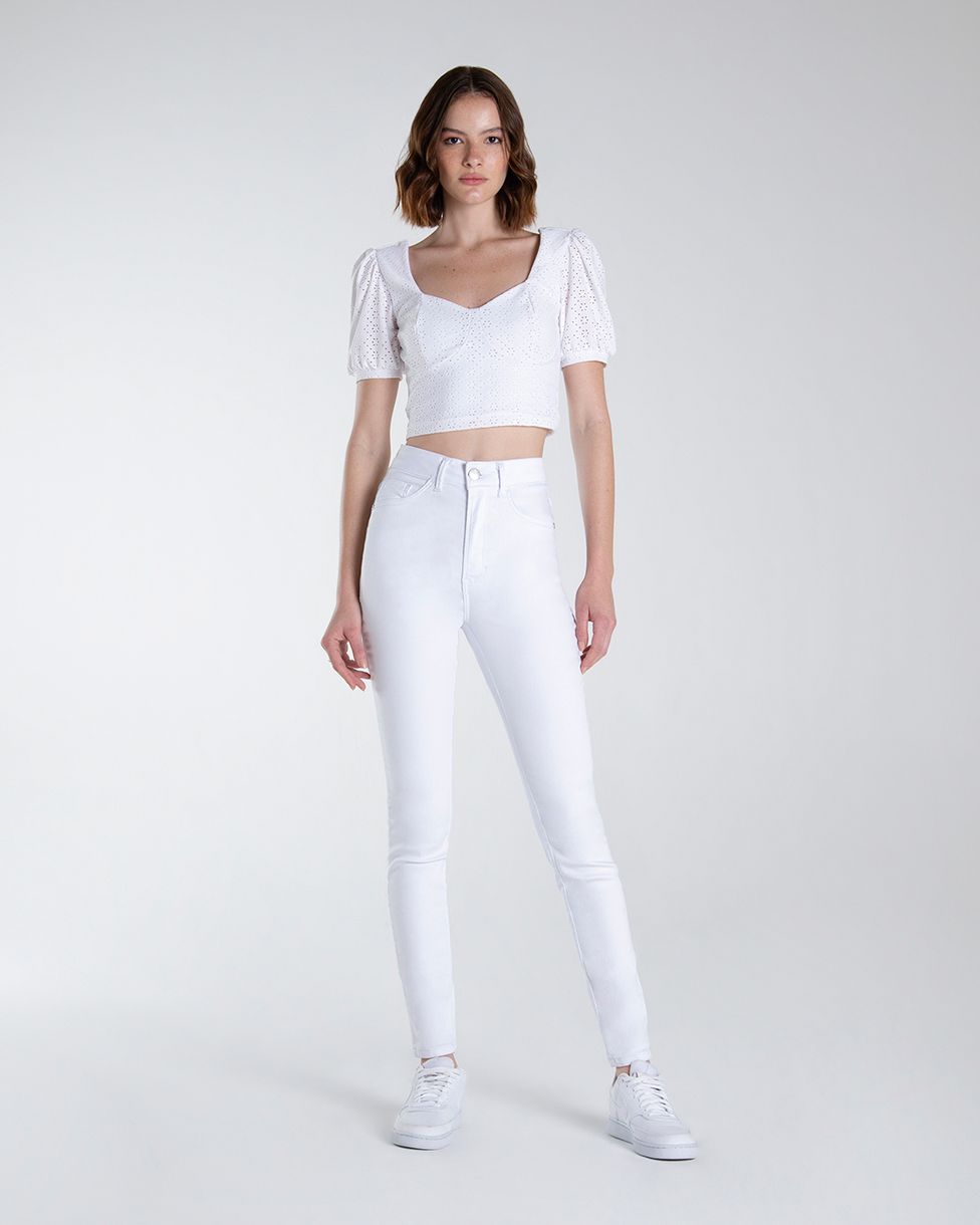 Calça Feminina Skinny Cintura Alta Em Sarja Com Elastano - ENFIM
