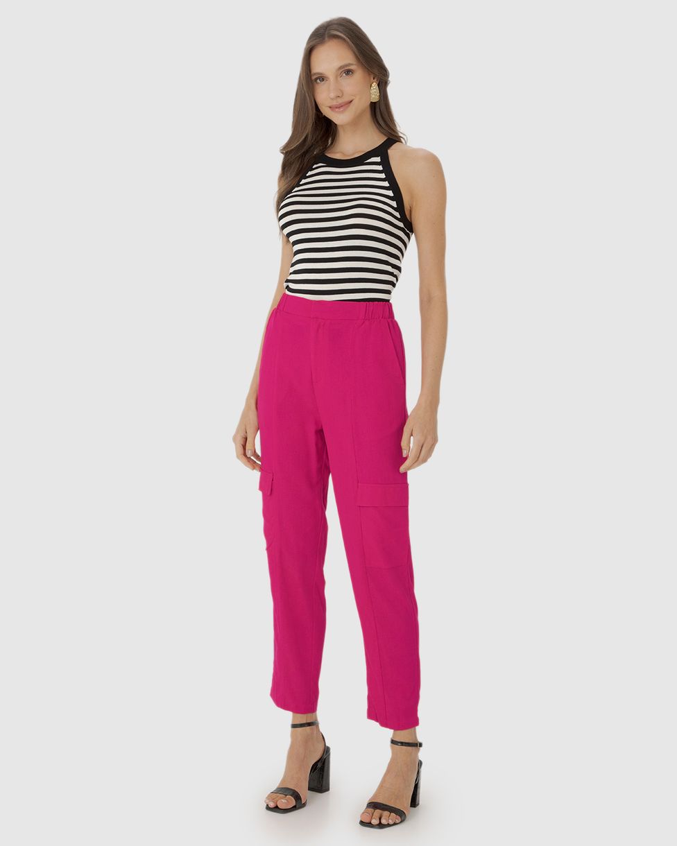 Calça Jogger Feminina Bolso Cargo Em Viscolinho