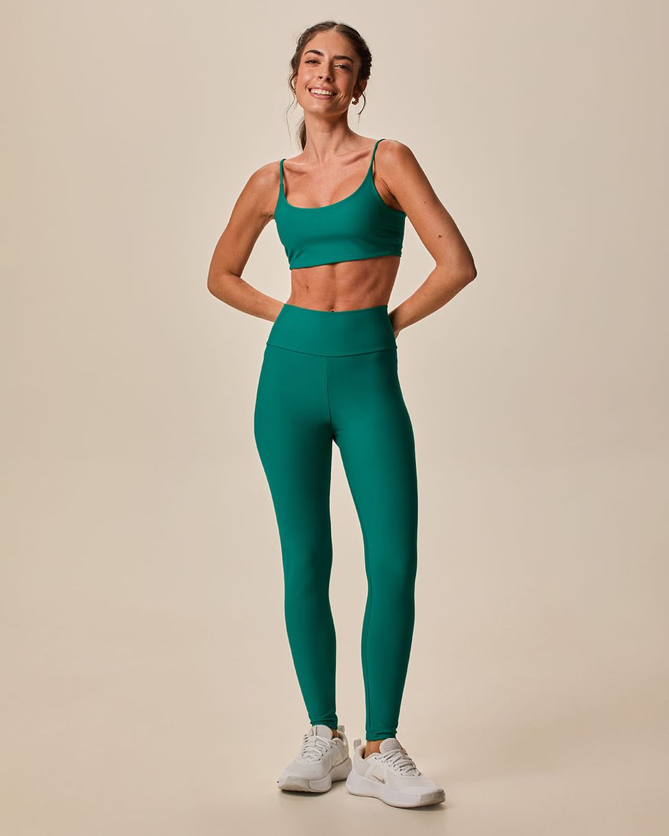 Calça Legging Esportiva Feminina Bolso Costas Em Malha Dry E Proteção UV50+ Malwee Active Verde - P