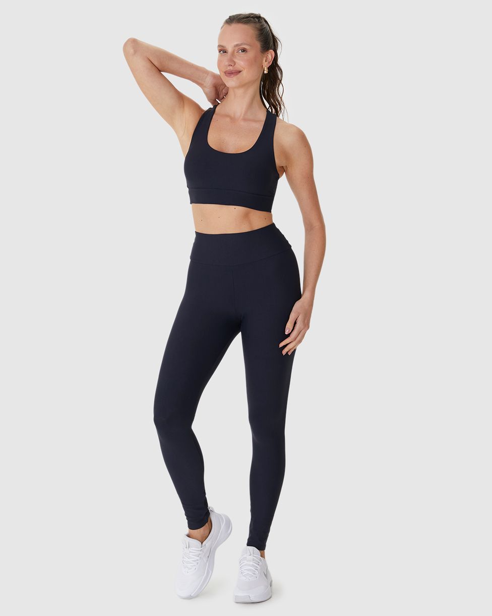 Calça legging esportiva feminina feita em malha compress eco com proteção UV50+, perfeita para quem busca alta performance aliada à sustentabilidade e proteção solar. Com tecido de compressão que modela o corpo, oferece conforto, suporte e liberdade total para seus treinos.
