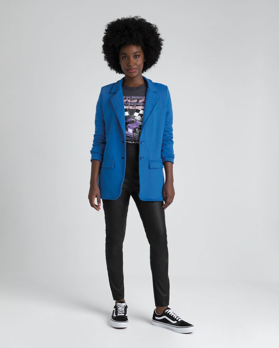 A calça Legging feita em courino conta com cintura alta com abertura na lateral por zíper invisível, o que torna a peça super prática no vestir. Com modelagem ajustada no corpo, essa calça também tem o seu diferencial por possuir abertura na barra com fecho em zíper. Com detalhe de plaqueta metálica no posterior. Uma peça super fashionista e perfeita para usar blusão de tricô Enfim e bota tratorada!