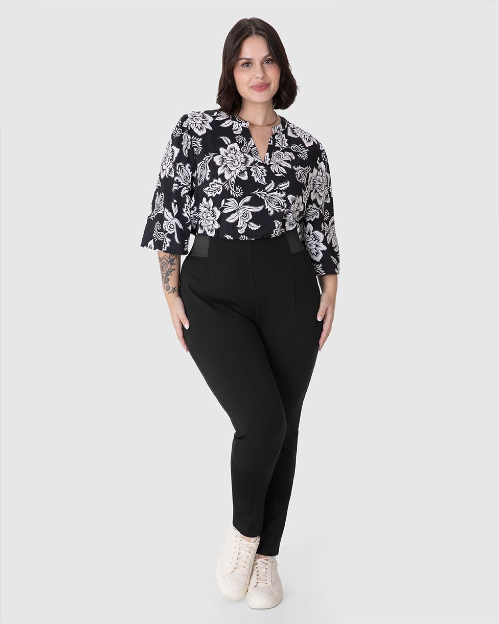 Calça Legging Feminina Plus Size Cós Detalhe Elástico Em Malha Ponto Roma Preto - G4