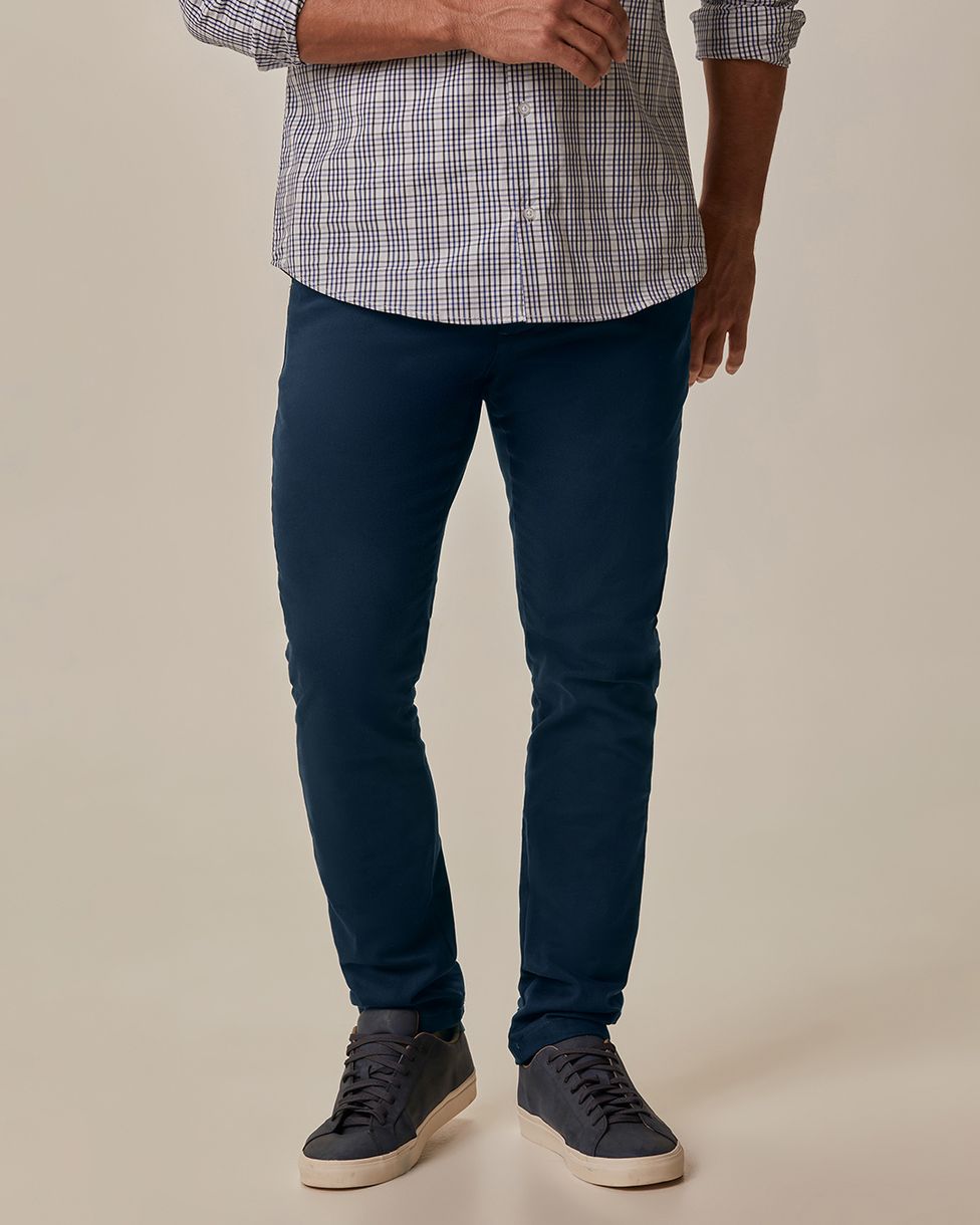 Calça Masculina Chino Bolso Funcional Em Sarja Com Elastano