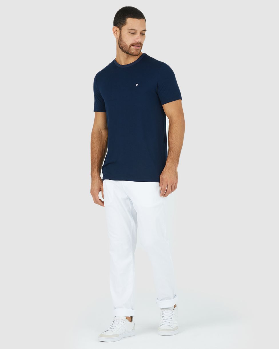 Calça masculina confeccionada em sarja com elastano. Apresentando a modelagem Chino, assemelhando-se à alfaiataria. Essa peça conta com cintura média, cós com passantes, bolsos laterais ao estilo faca e fechamento por zíper e botão único. A peça ainda possui bolsos posteriores embutidos. A sarja é um tecido plano mais encorpado que absorve o calor externo, proporcionando frescor ao vestir e o elastano traz maior conforto para a peça. Uma calça clássica para compor diversos looks da estação. Invista com camiseta listrada Malwee e tênis slip on, para um visual despojado!