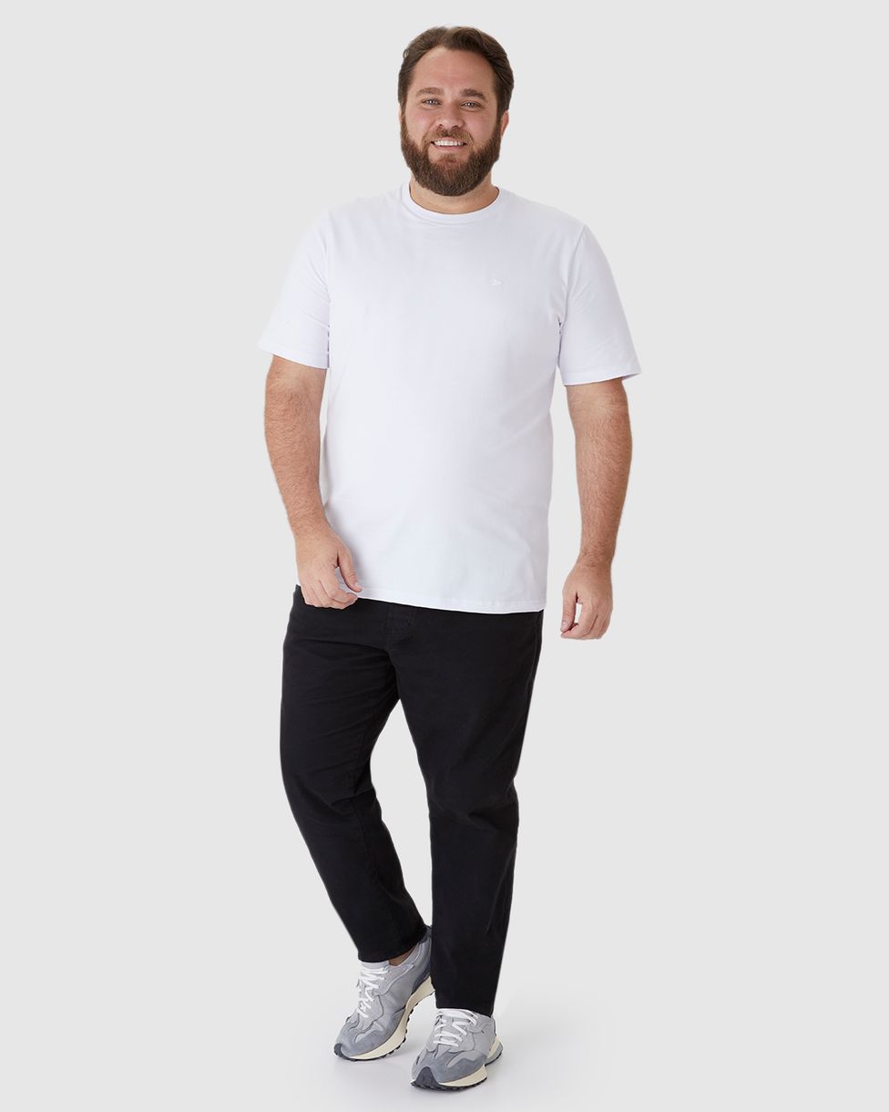 Calça Masculina Plus Size Chino Cós Elástico Em Sarja Com Elastano