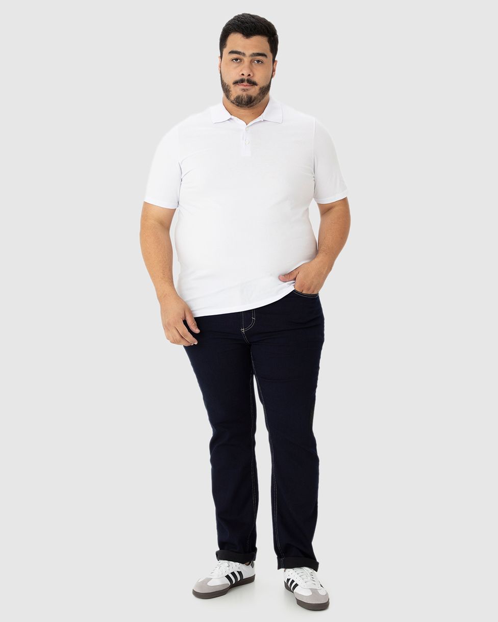Calça Masculina Plus Size Cintura Média Em Flex Jeans