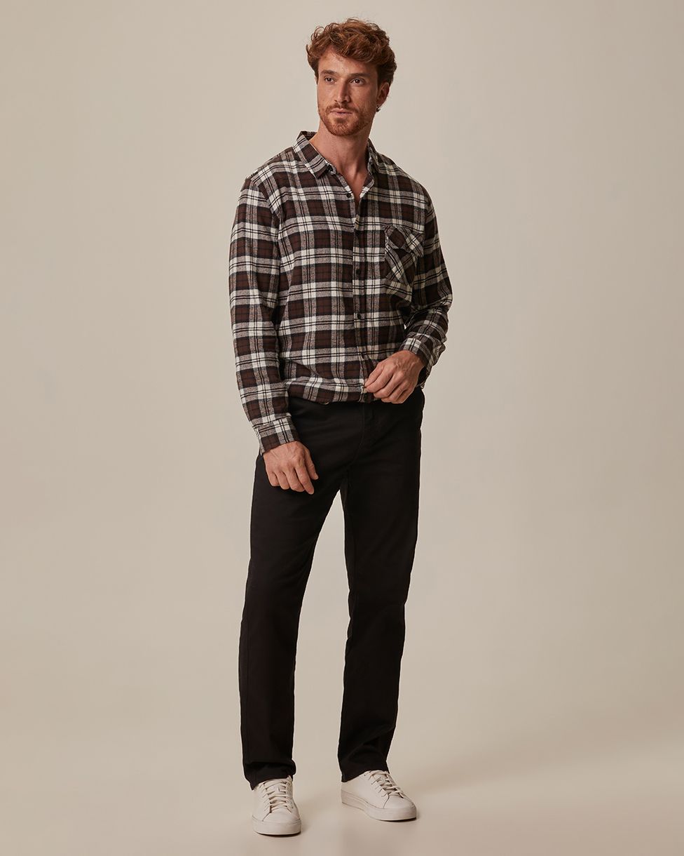 Calça Masculina Reta Cintura Média Em Sarja Com Elastano Preto - 48