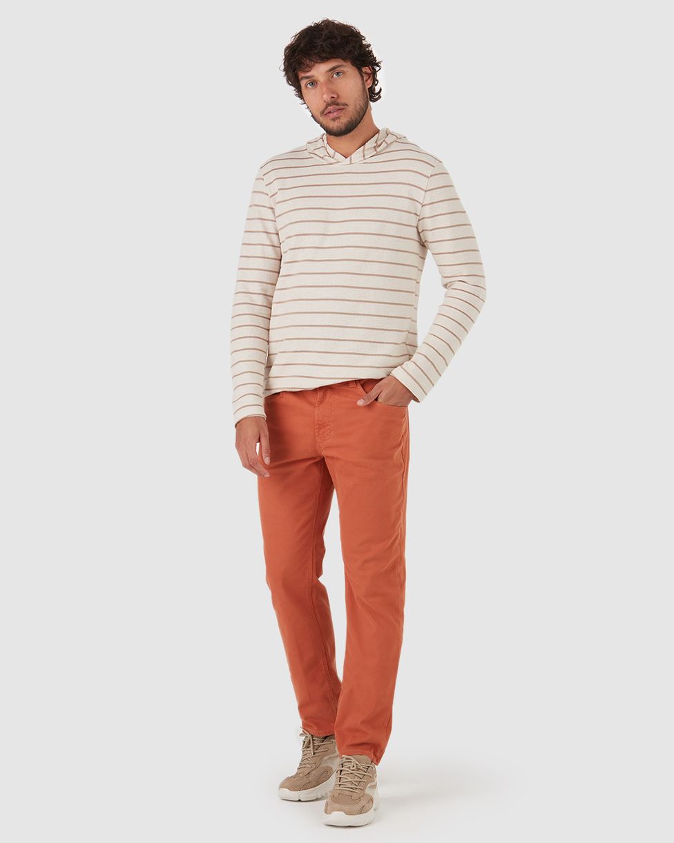 Calça masculina confeccionada em sarja com elastano. Apresentando a modelagem Slim, com caimento que se ajusta ao corpo, proporcionando conforto e versatilidade no vestir. Essa peça conta com cós com passantes, bolsos dianteiros e fechamento por zíper e botão único. Com bolsos posteriores e etiqueta decorativa da marca. A sarja é um tecido plano em algodão mais encorpado que não estica com facilidade e absorve o calor externo, proporcionando conforto e frescor ao vestir. Invista com camiseta lisa de tom claro e tênis de cano baixo!