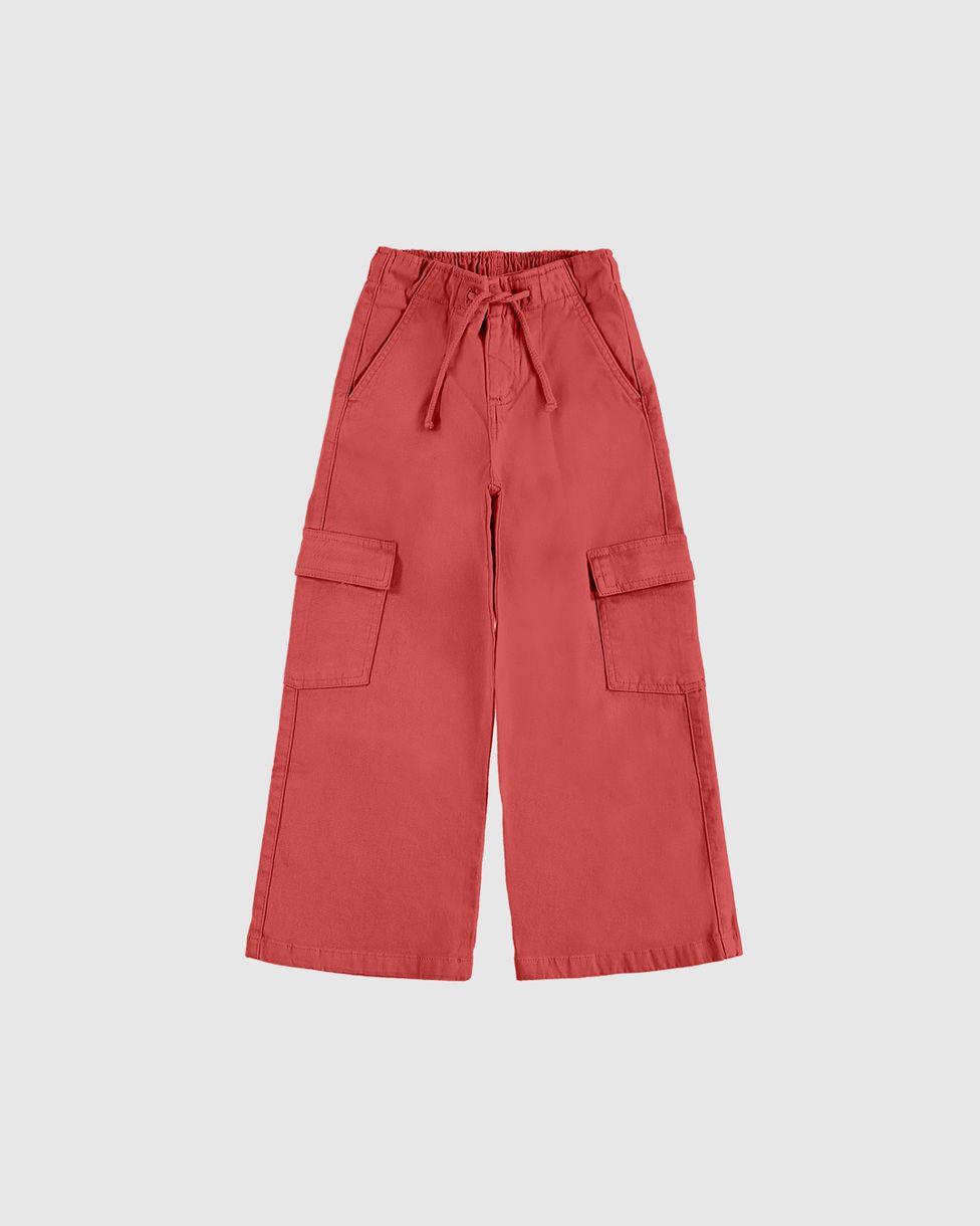 Calça Menina Wide Leg Cargo Em Sarja Com Elastano - Carinhoso