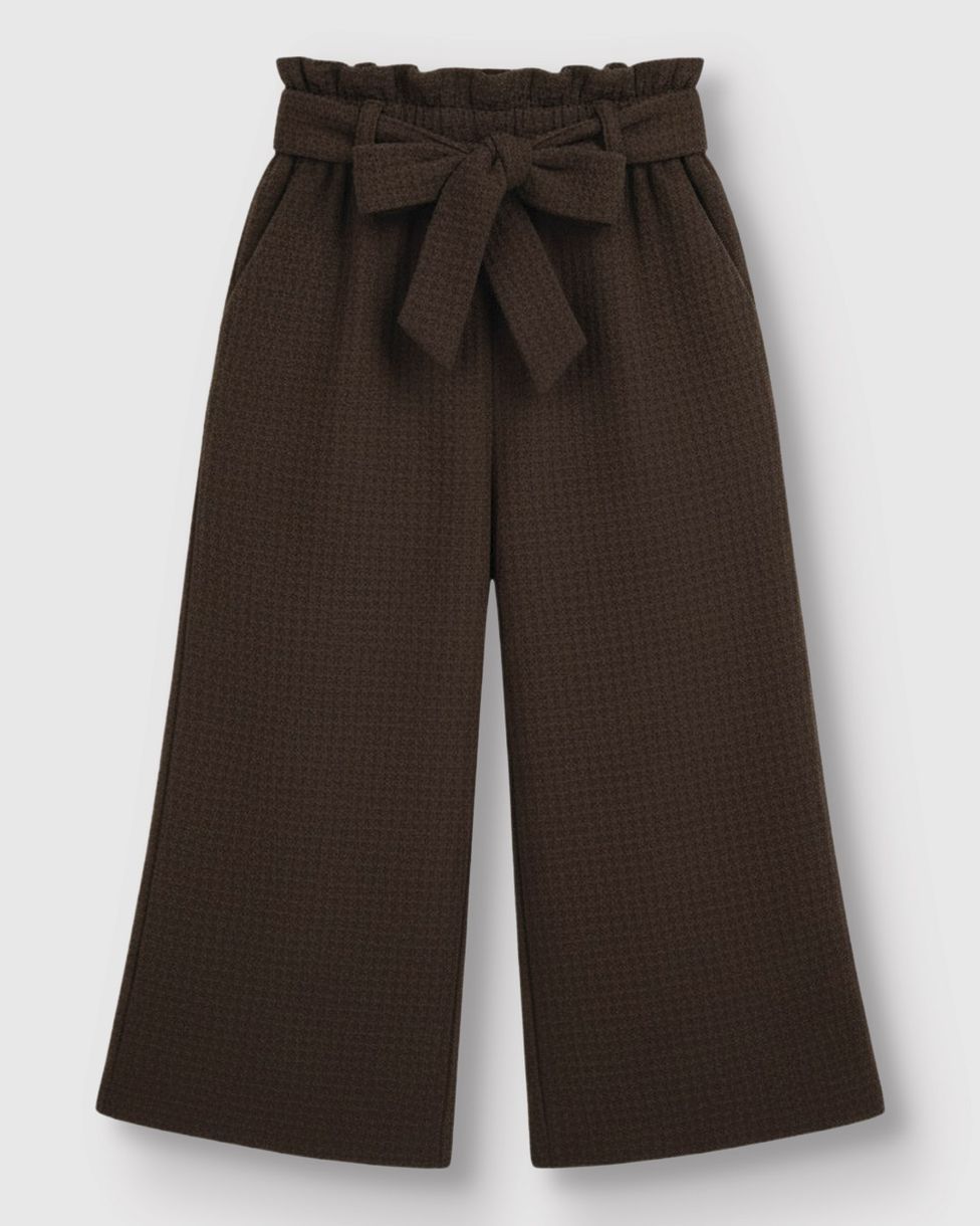 A Calça Wide Leg da Carinhoso é a tradução de estilo e conforto para o Outono Inverno 26. Com moderna modelagem clochard, a peça em malha texturizada oferece um caimento leve e sofisticado. O cinto acompanhante finaliza o look com um laço charmoso, perfeito para as mini fashionistas.