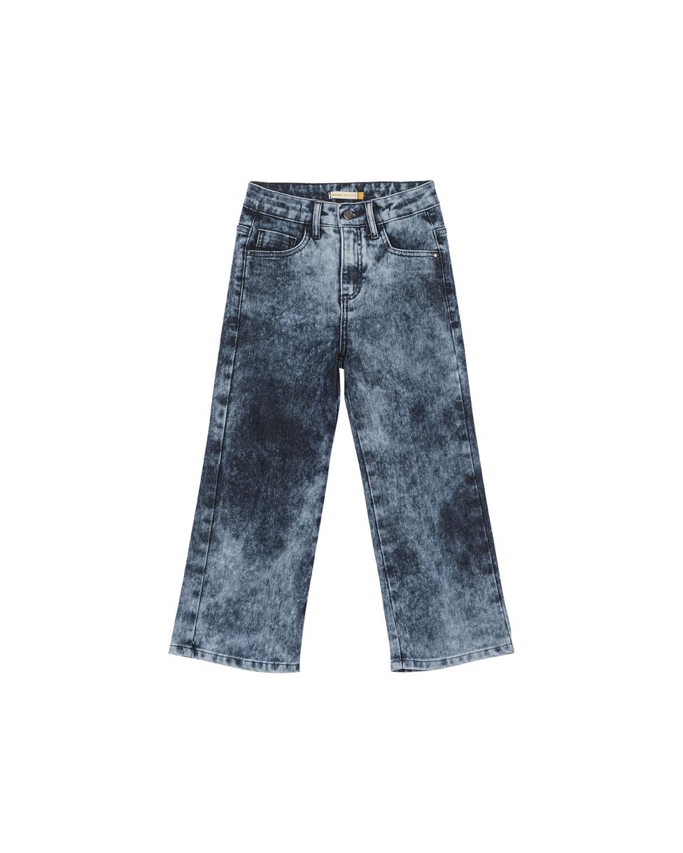 Calça Menina Wide Leg Marmorizada Em Jeans Com Elastano Carinhoso