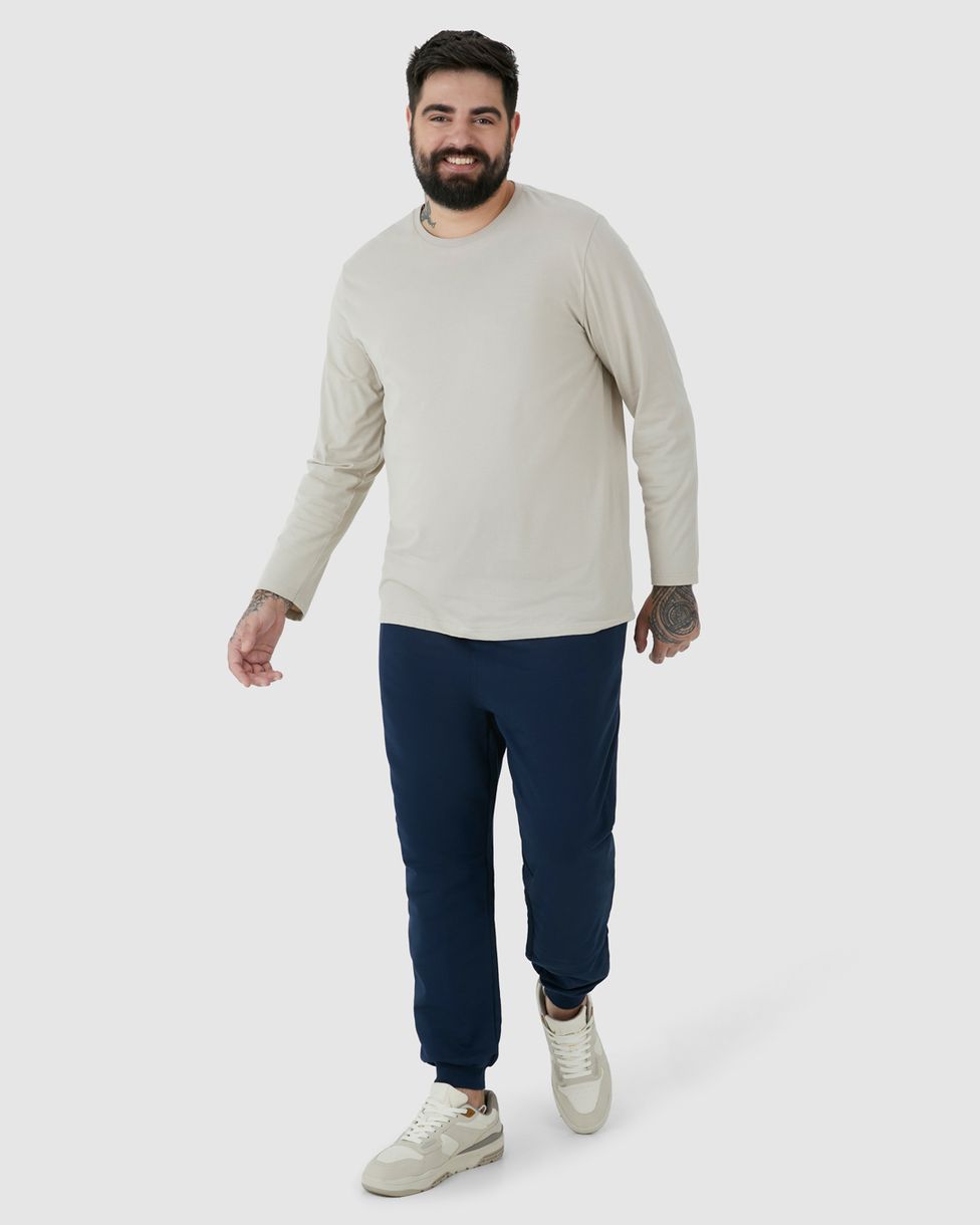 Calça Básica Masculina Plus Size Jogger Em Moletom