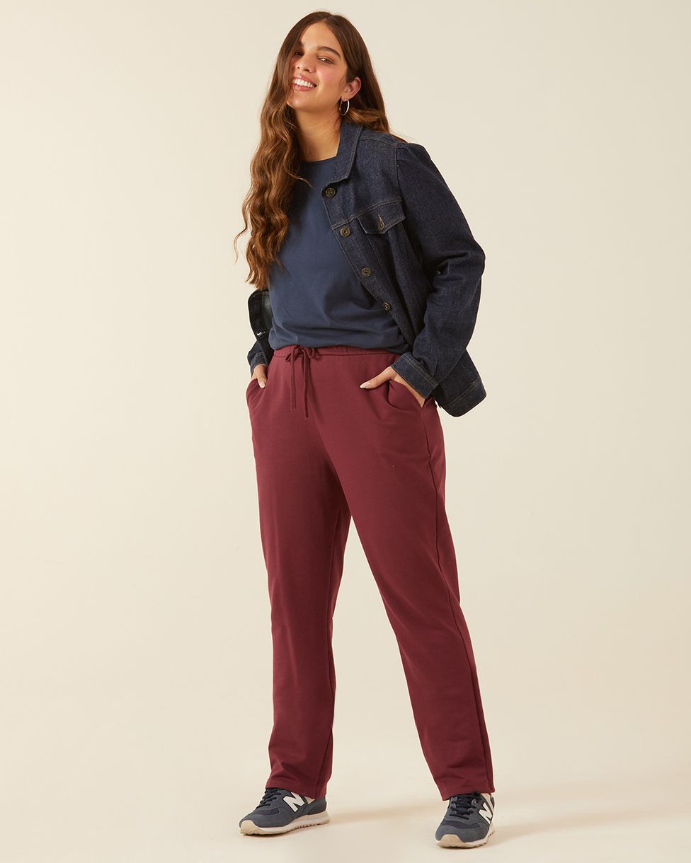 Calça Básica Feminina Plus Size Em Moletom Stretch Flanelado