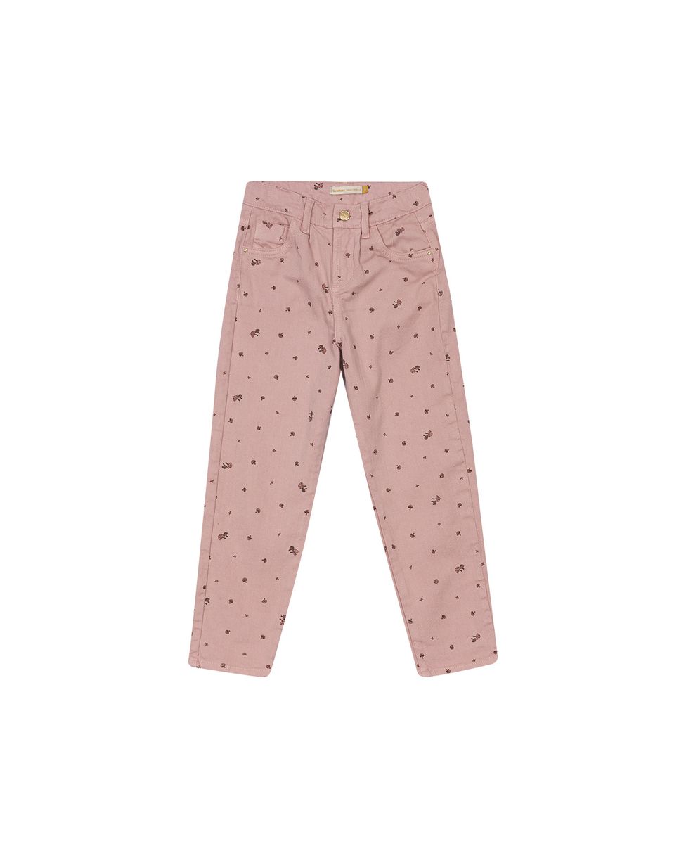 Calça Mom Menina Cogumelos Em Sarja Com Elastano Carinhoso
