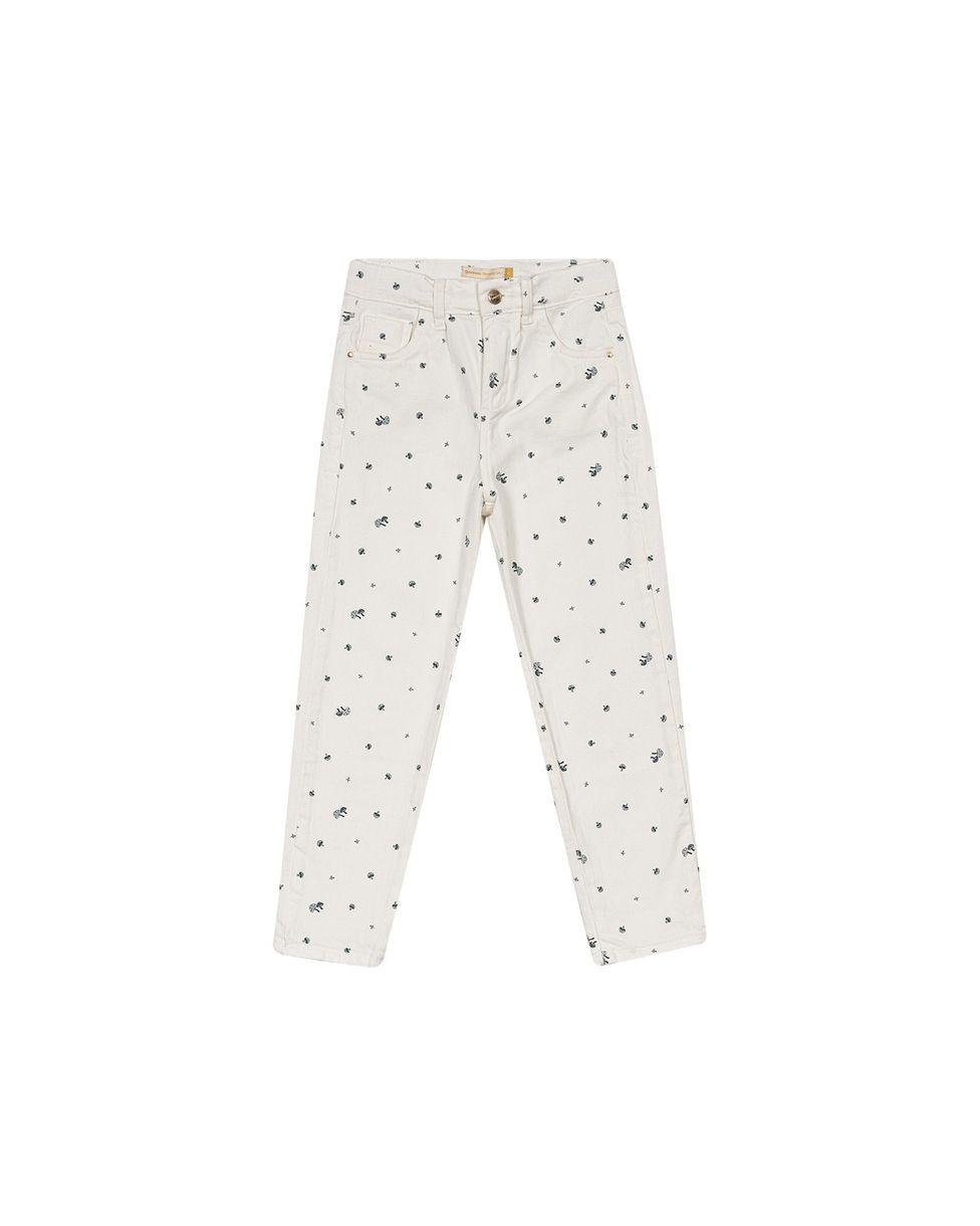Calça Mom Menina Cogumelos Em Sarja Com Elastano Carinhoso
