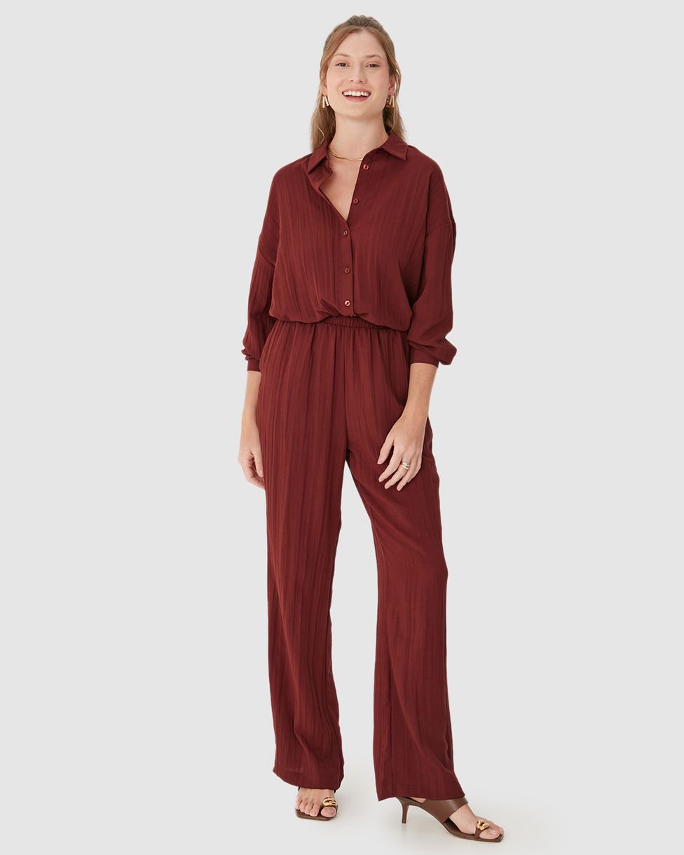 • Calça Reta em Tecido Linho