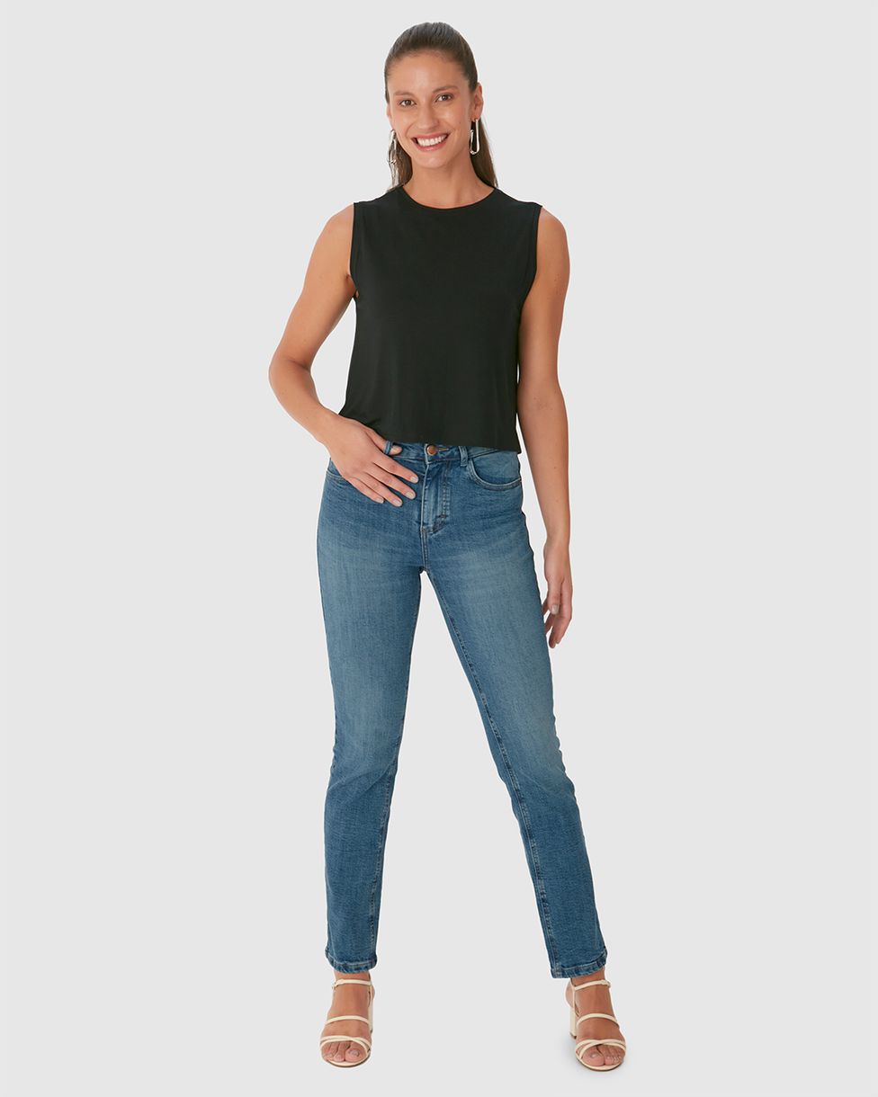 • Calça Reta Em Flex Jeans