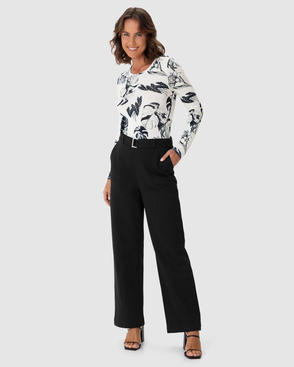 Calça Reta Feminina Com Cinto E Bolso Funcional Em Moletom Flanelado