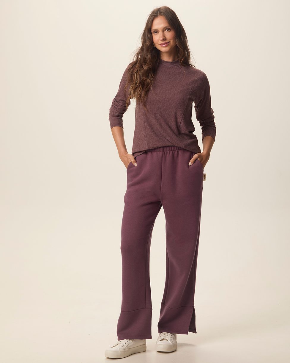 Calça Reta Feminina Fenda Barra Lateral Em Moletom Do Abraço
