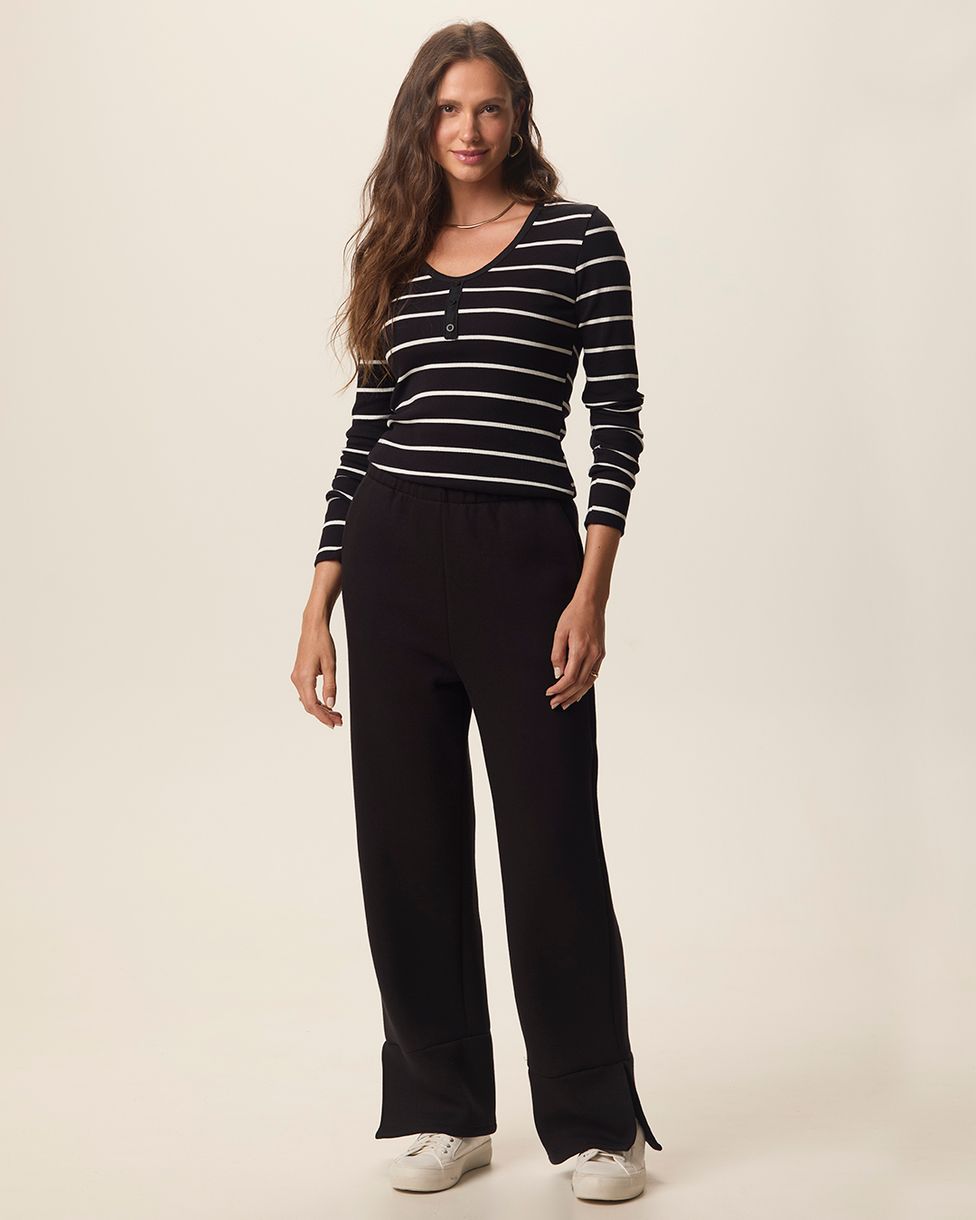 Calça Reta Feminina Fenda Barra Lateral Em Moletom Do Abraço Preto - P