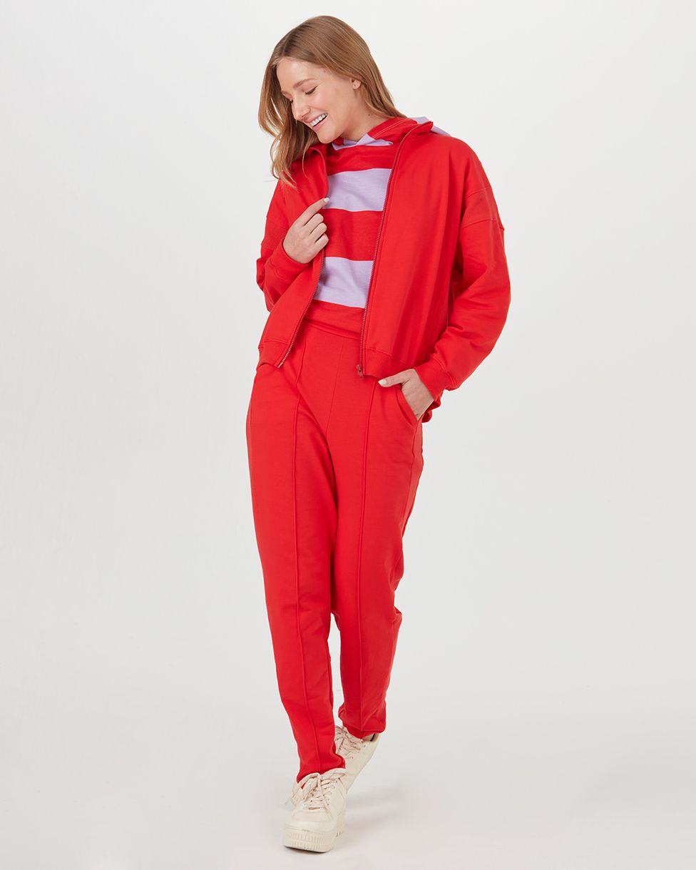 Calça Reta Feminina Recorte Frontal Em Moletom Stretch Flanelado