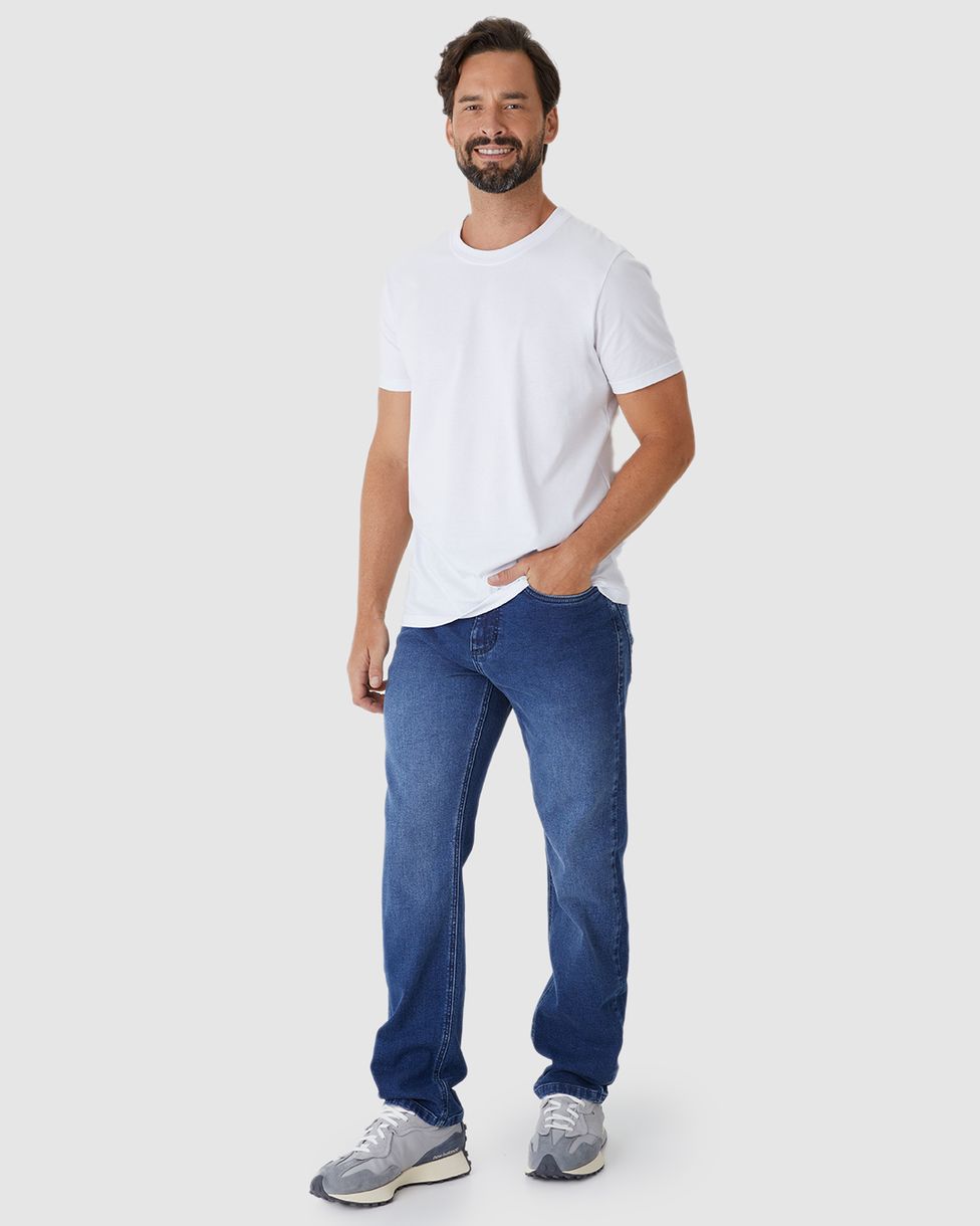 • Calça Reta em Jeans Moletom Stretch