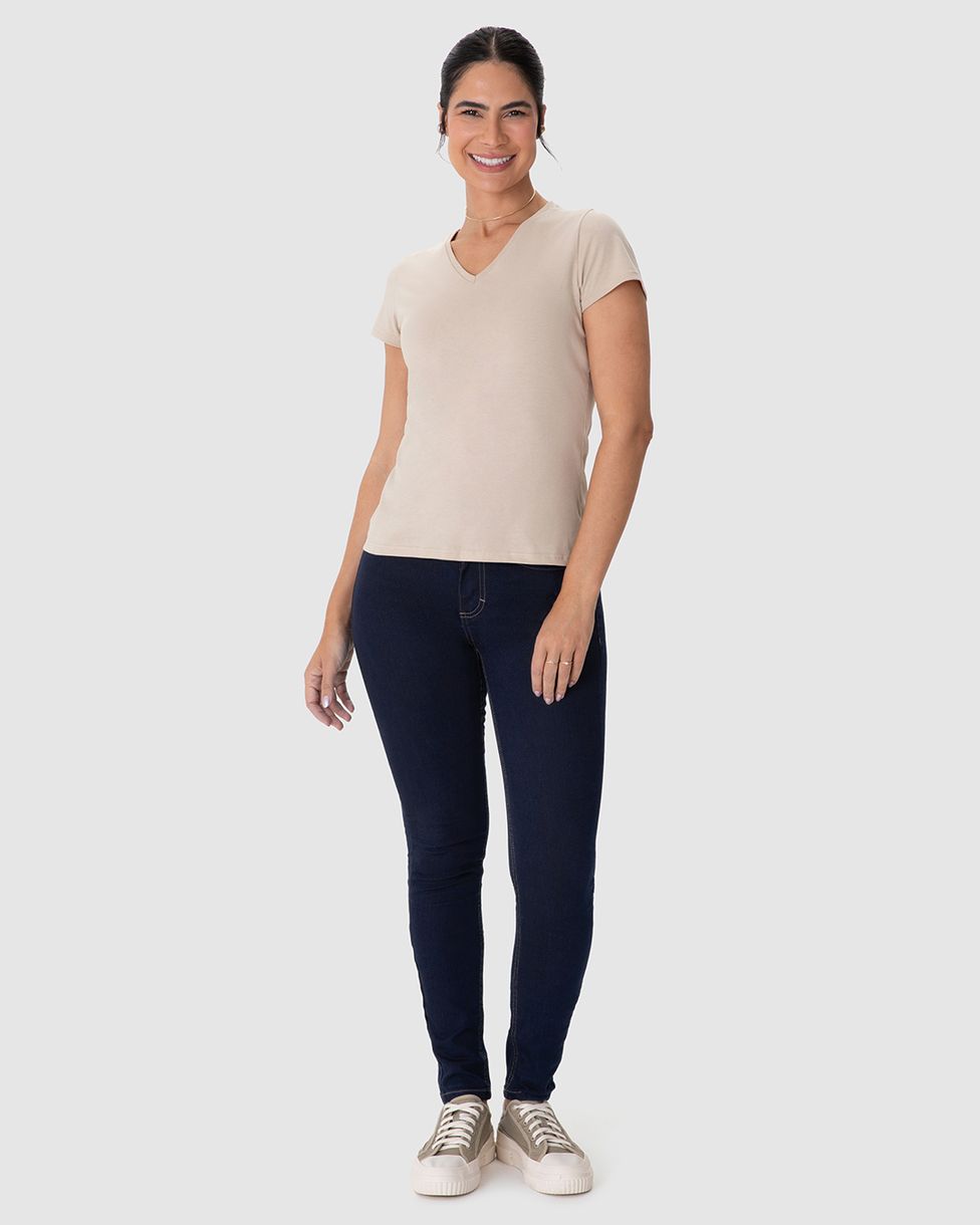 Calça Skinny Feminina Cintura Média Bolso Funcional Em Jeans Stretch