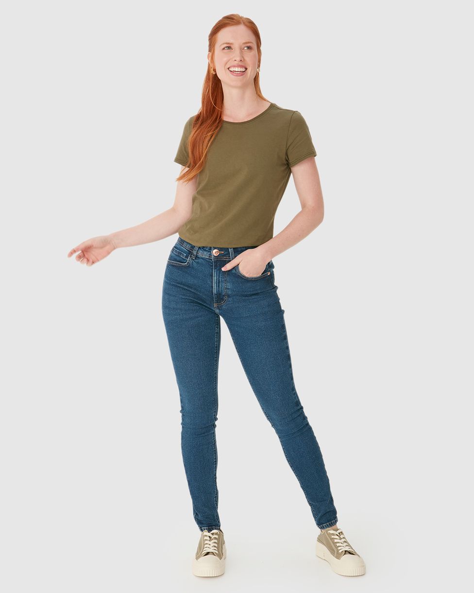 Calça Skinny Feminina Cintura Média Etiqueta Decorativa Em Flex Jeans