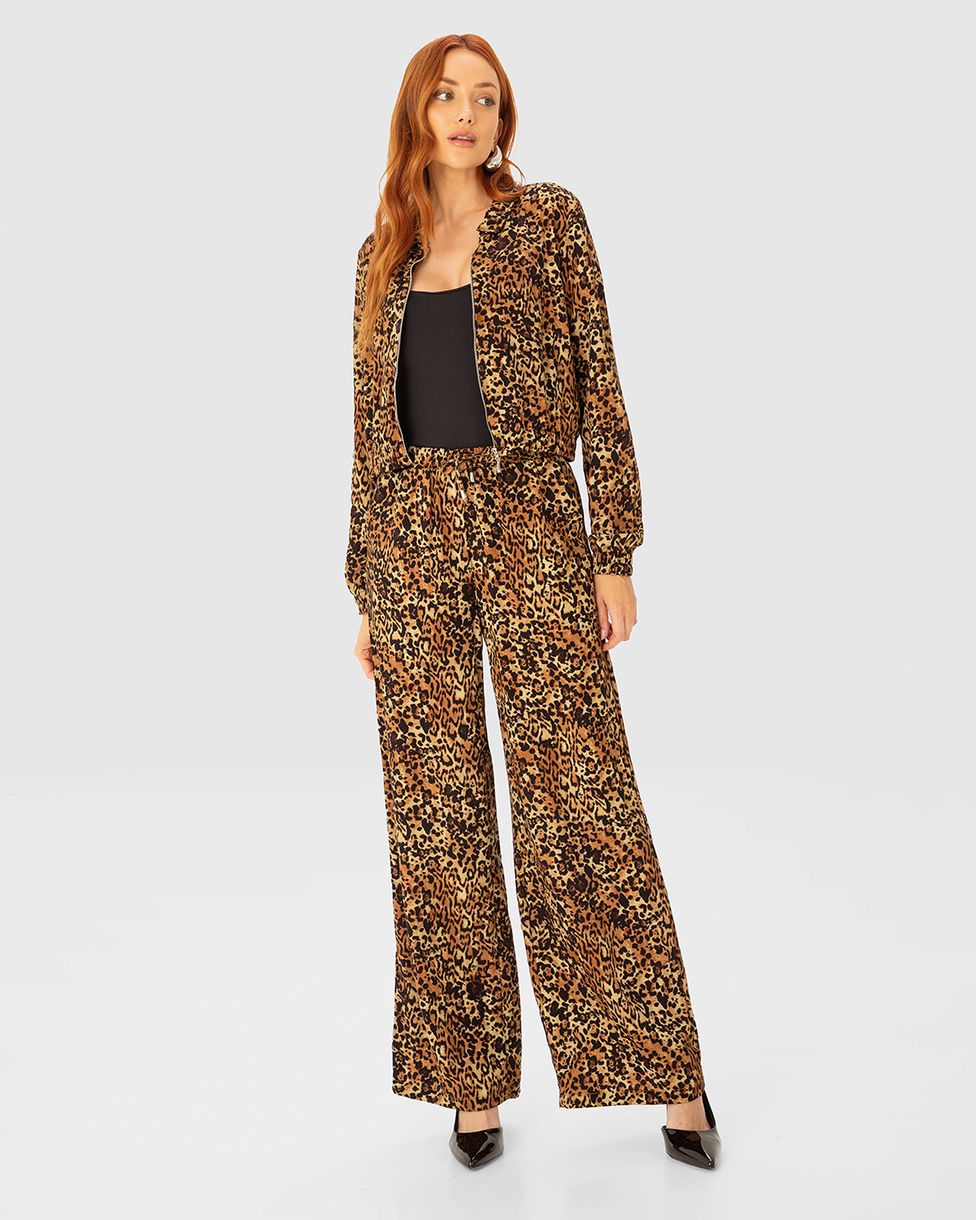 Calça Wide Leg Feminina Animal Print Em Viscose - ENFIM
