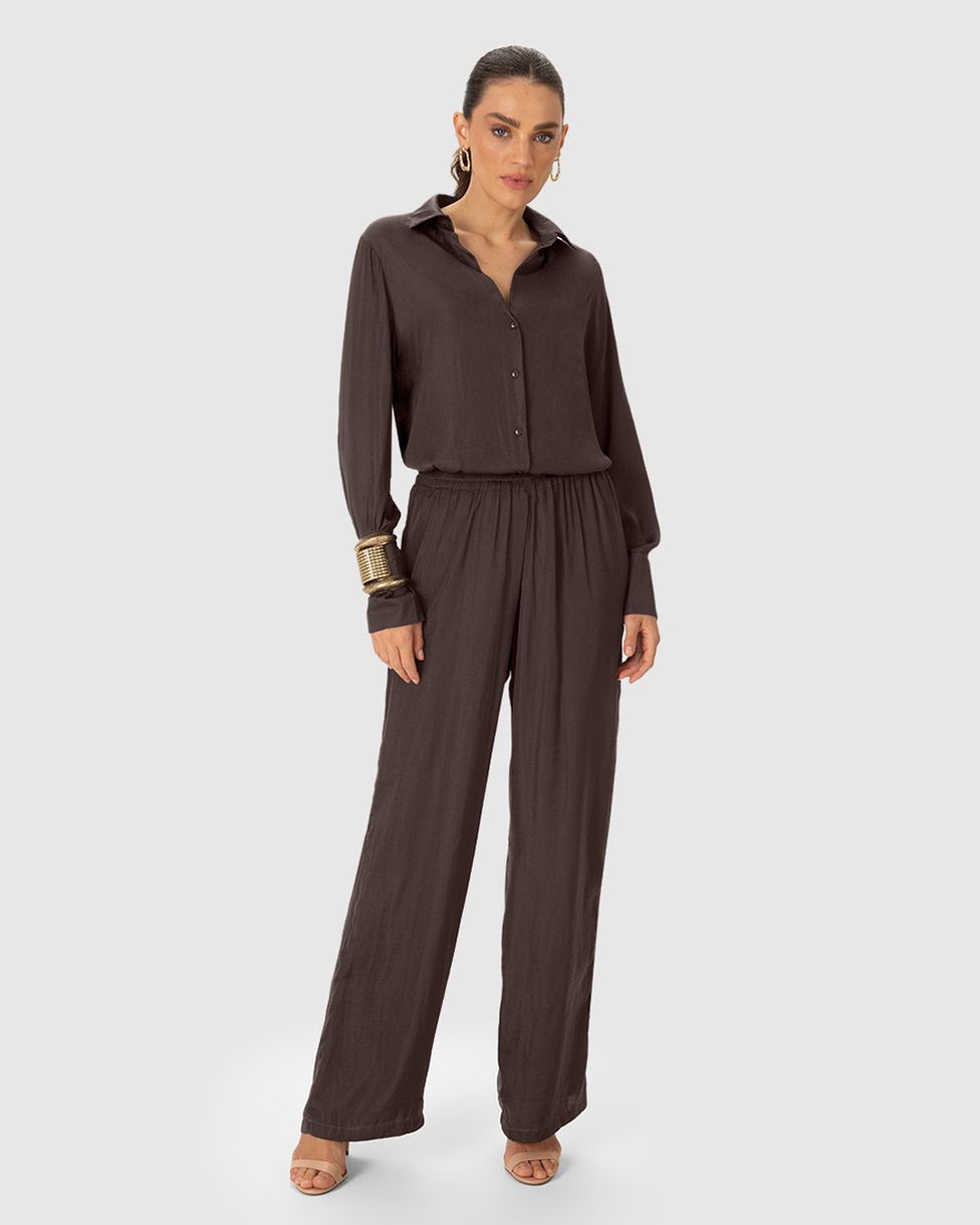 • Calça Wide Leg em Tecido Acetinado