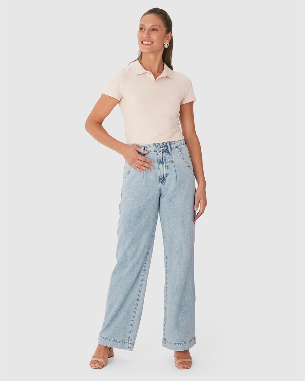 • Calça Wide Leg Em Jeans Leve