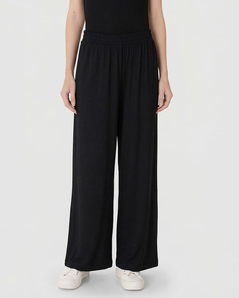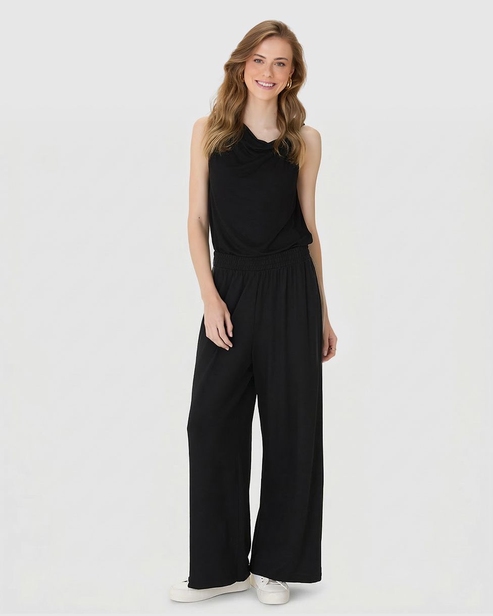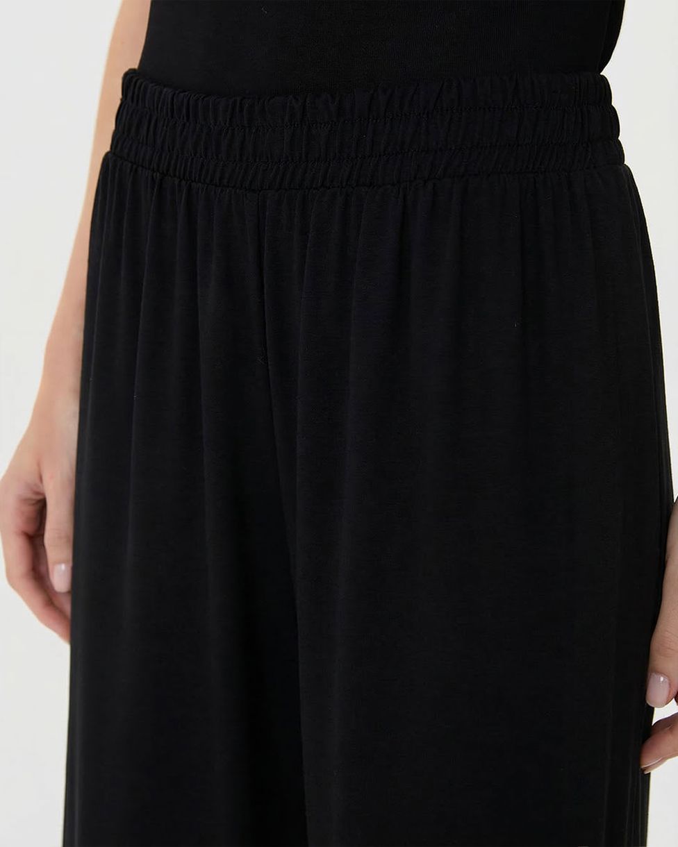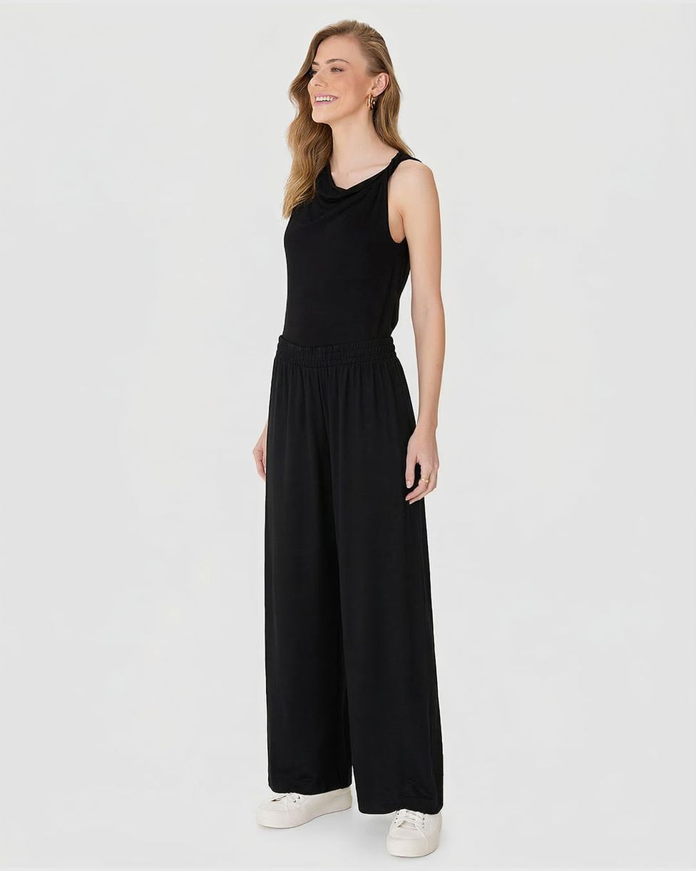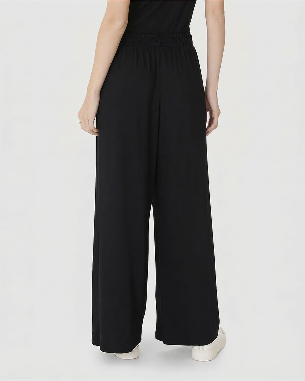 Calça Wide Leg Feminina Cós Elástico Em Moletinho De Viscose Preto - P