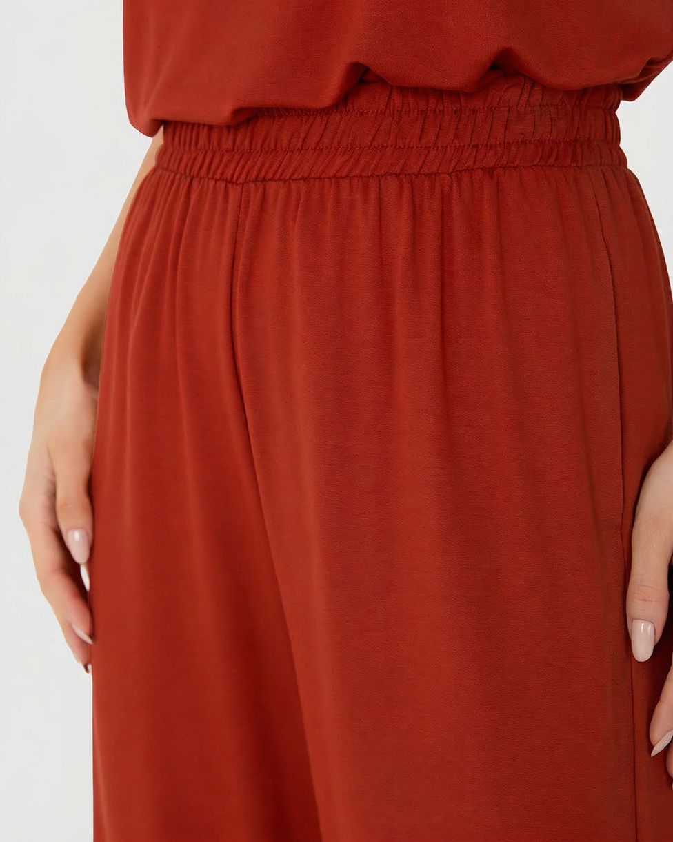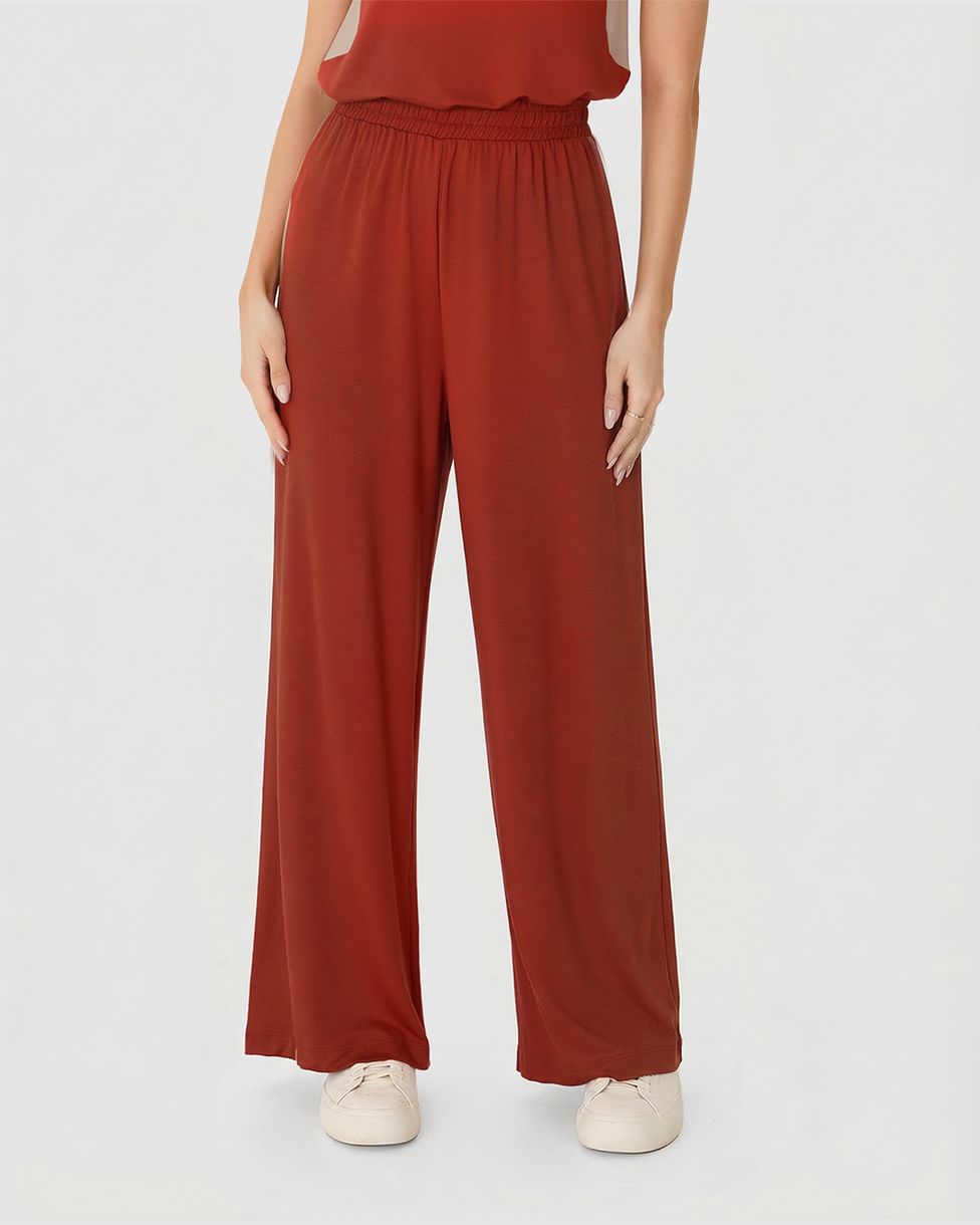 Calça Wide Leg Feminina Cós Elástico Em Moletinho De Viscose Vermelho - G