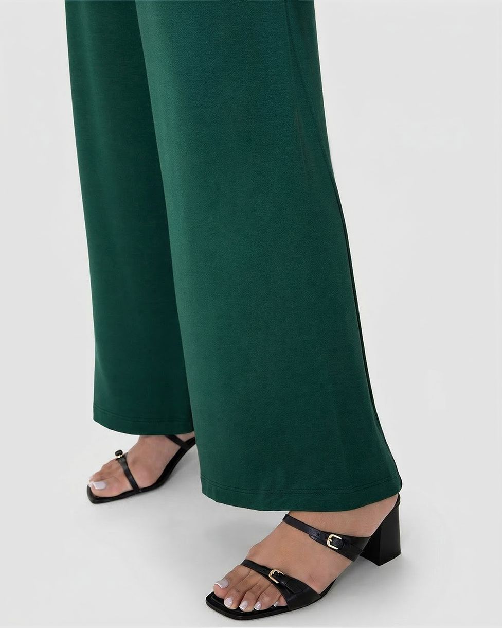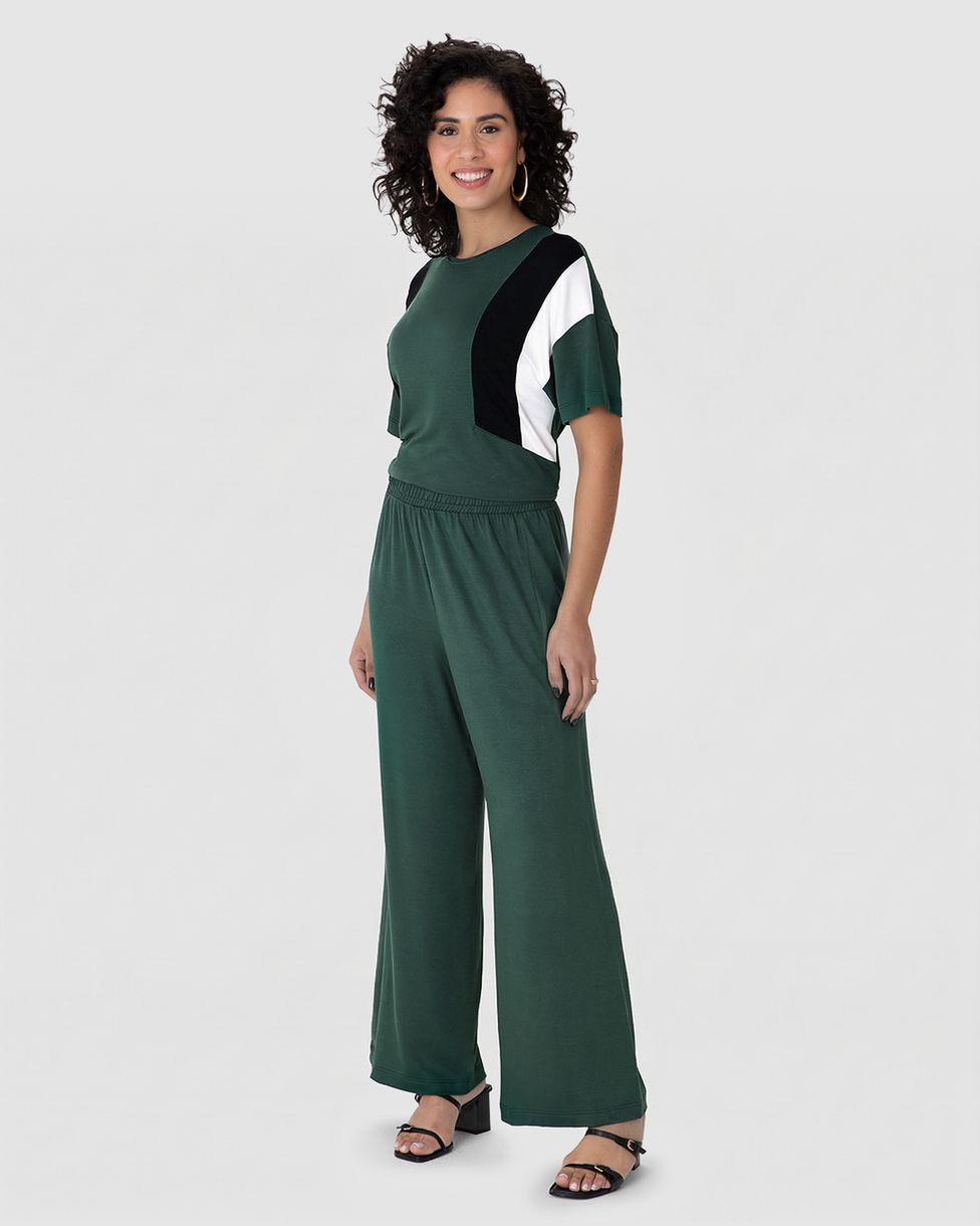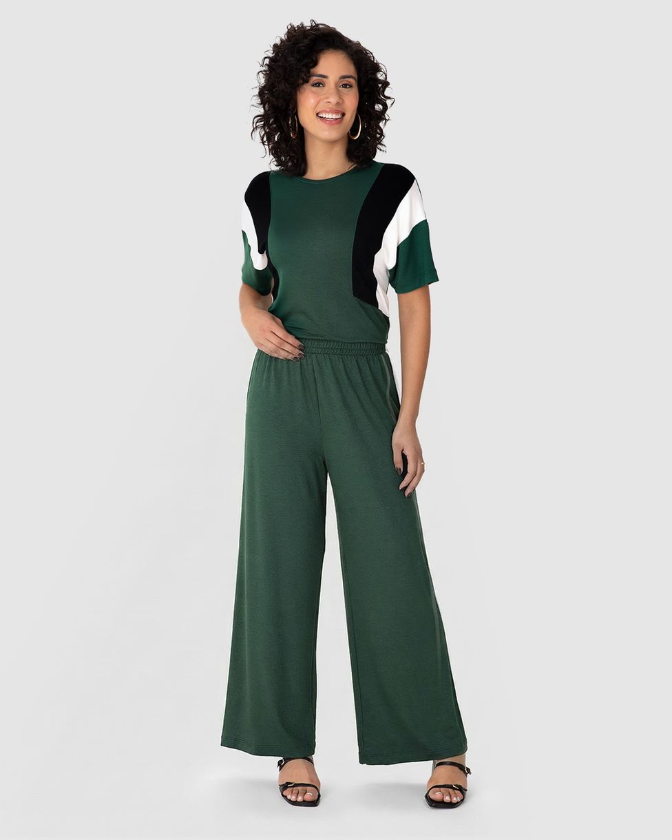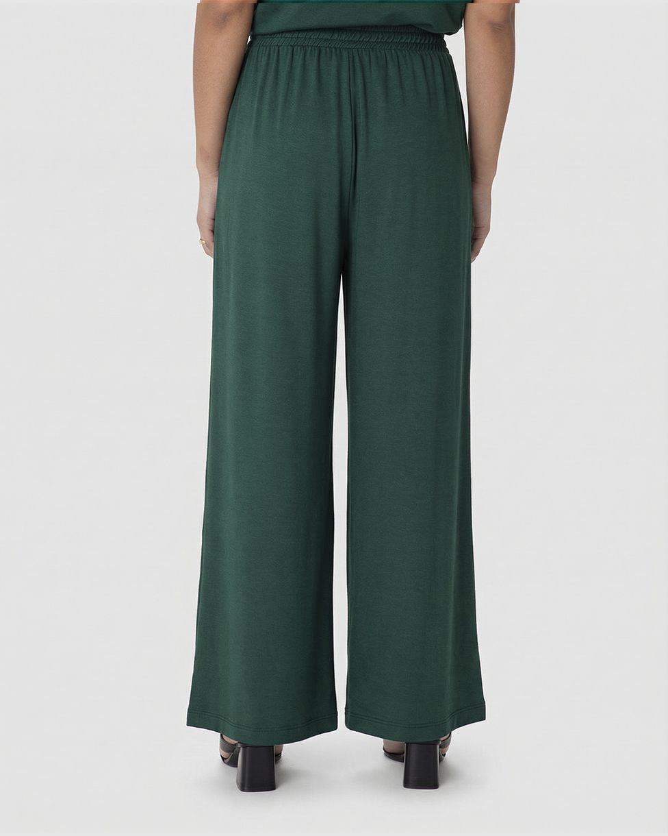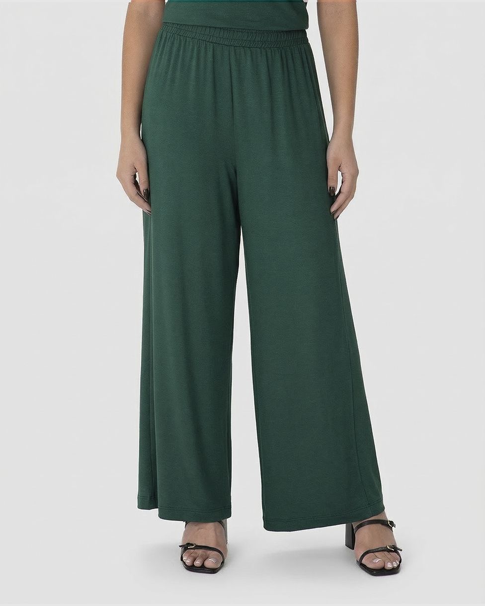 Calça Wide Leg Feminina Cós Elástico Em Moletinho De Viscose Verde - G