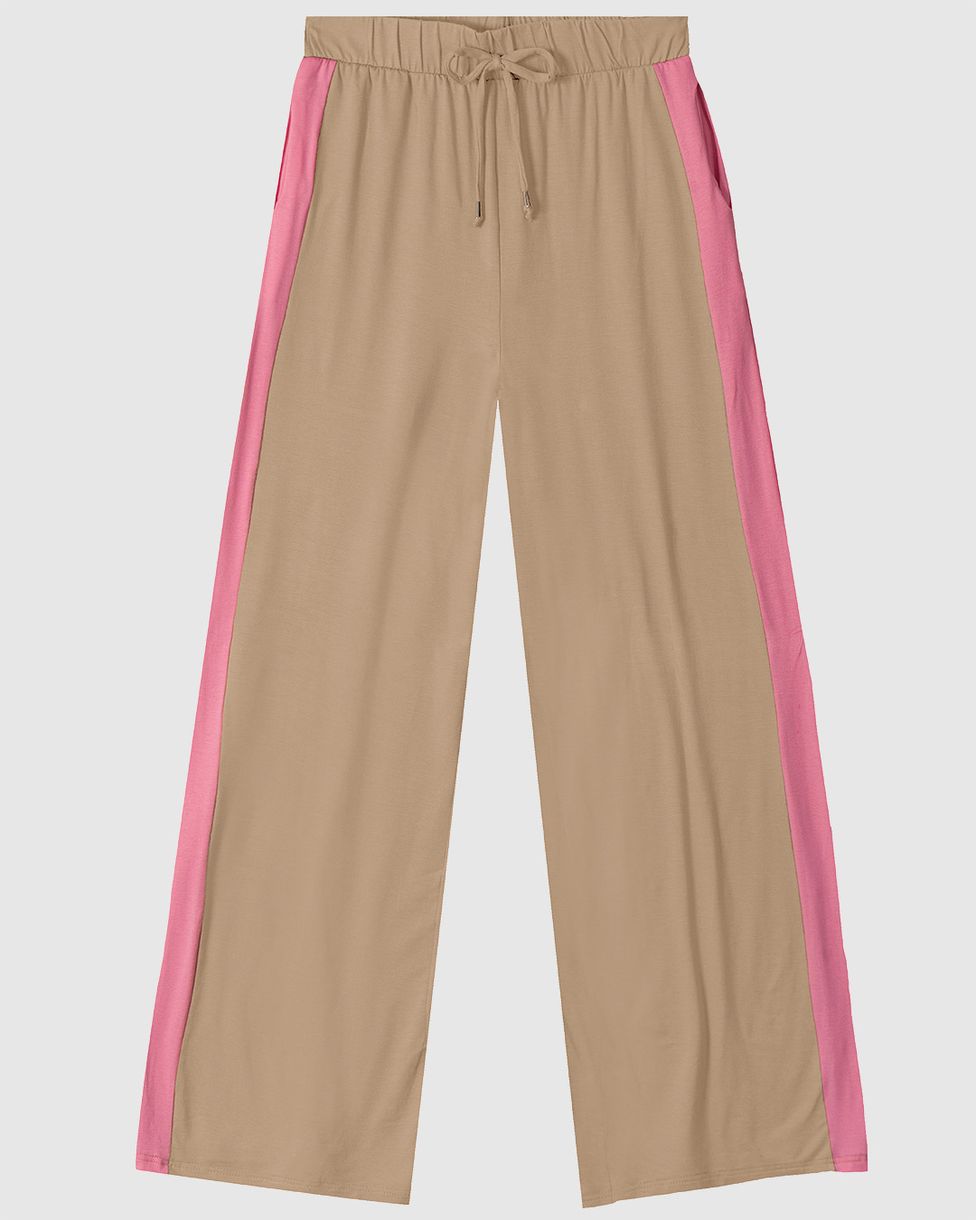 Calça Wide Leg Feminina Recorte Lateral Em Viscose Stretch
