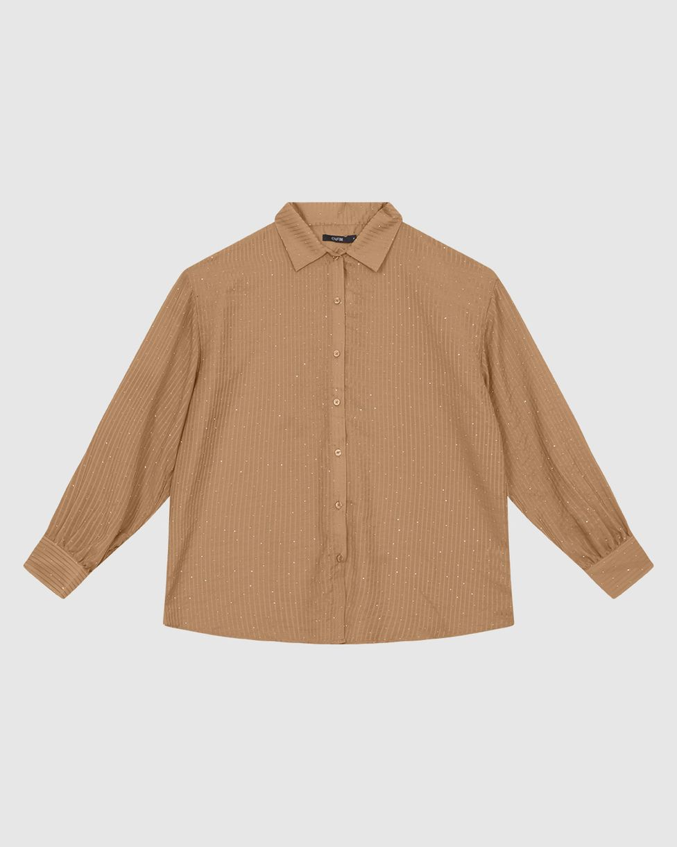 Camisa Ampla Feminina Aplique Strass Em Tecido Listrado Brilho - ENFIM