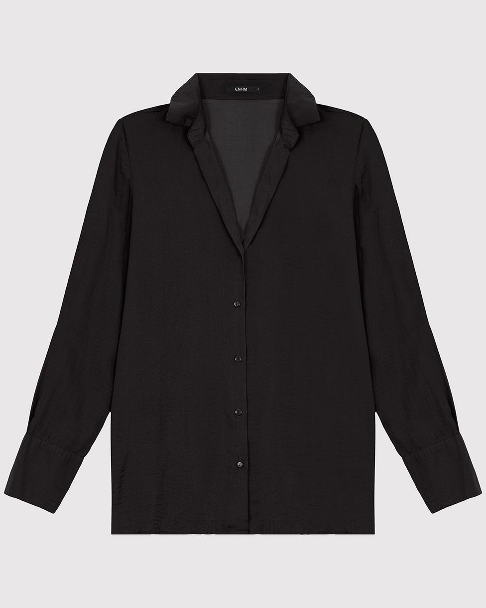 Camisa Ampla Feminina Manga Longa Abotoamento Frontal Em Cetim - ENFIM