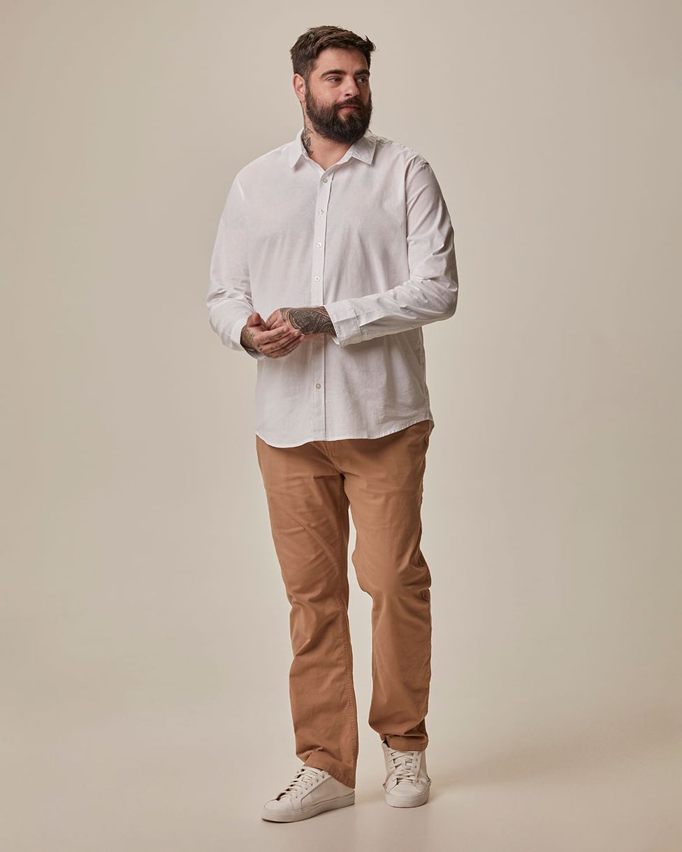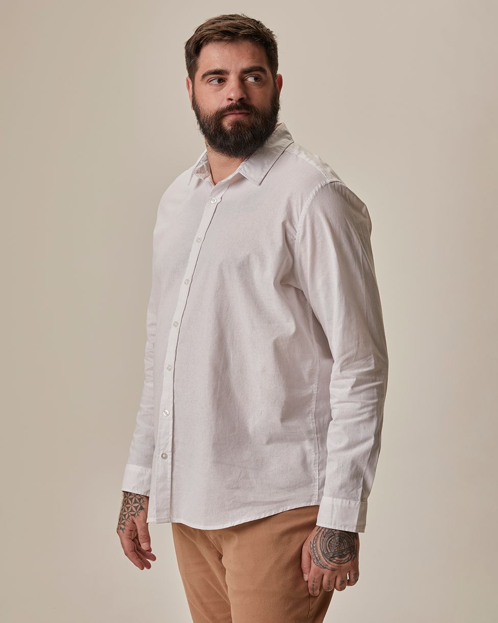 Camisa Básica Masculina Plus Size em Tricoline - Essencial para um guarda-roupa prático e elegante, esta camisa combina conforto e estilo em uma peça versátil. Feita sob medida para proporcionar ótimo caimento e liberdade de movimentos, é ideal para diferentes ocasiões, do trabalho ao lazer.