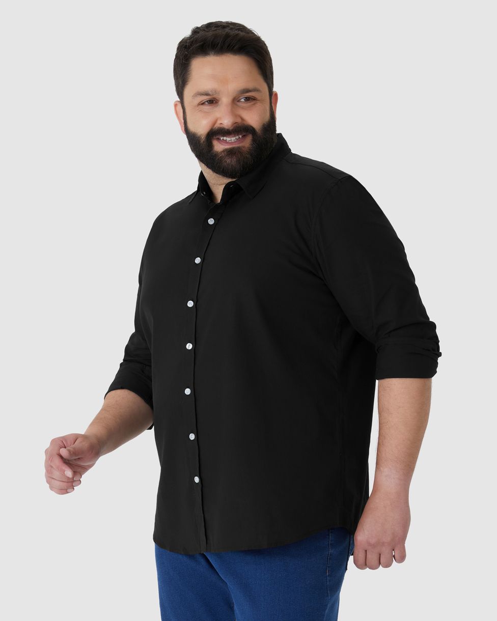 Camisa Básica Masculina Plus Size em Tricoline - Essencial para um guarda-roupa prático e elegante, esta camisa combina conforto e estilo em uma peça versátil. Feita sob medida para proporcionar ótimo caimento e liberdade de movimentos, é ideal para diferentes ocasiões, do trabalho ao lazer.