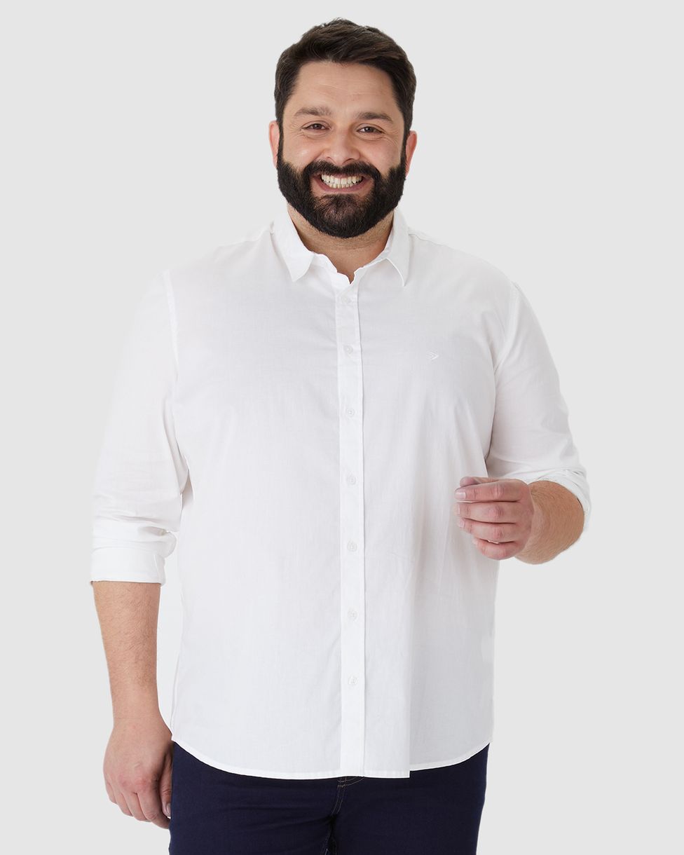 Camisa Básica Masculina Plus Size Manga Longa Em Algodão Com Elastano