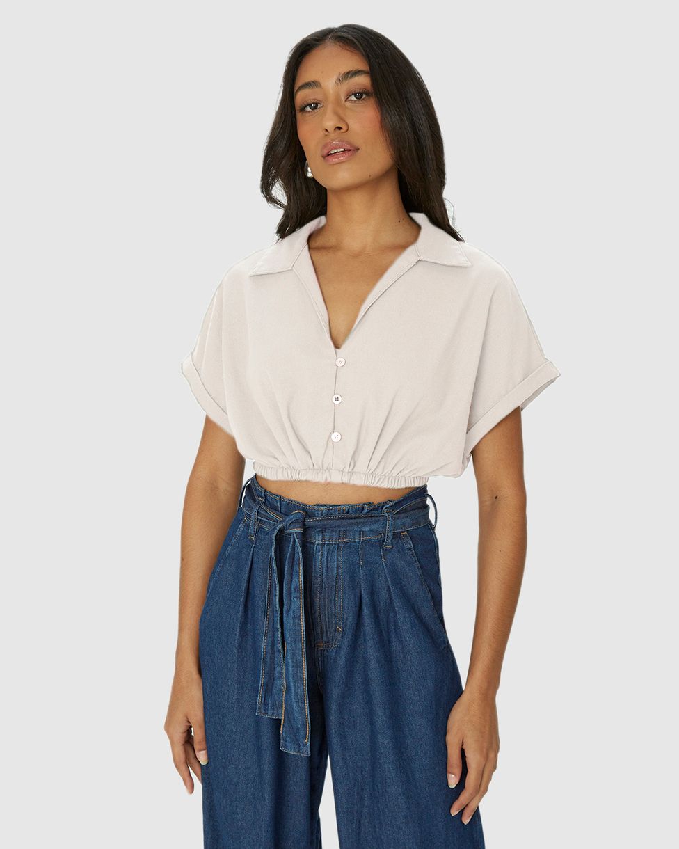 • Camisa Cropped Em Viscolinho