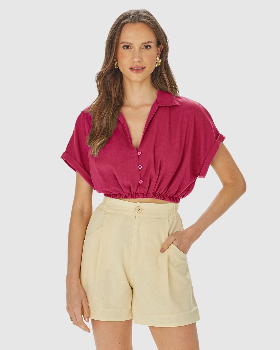 • Camisa Cropped Em Viscolinho
