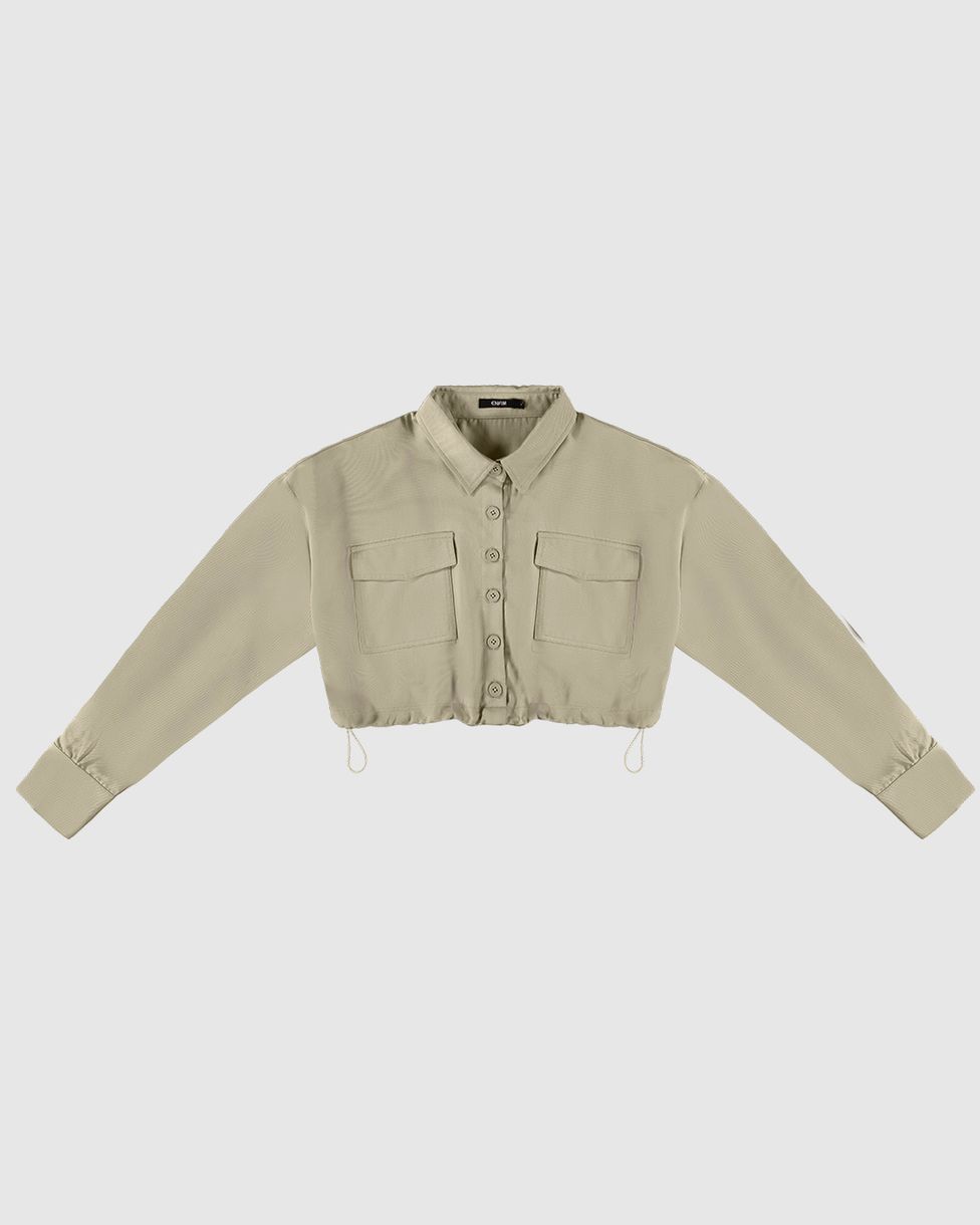 • A Camisa Cropped Feminina Com Regulador Frontal Em Liocel Sarjado - ENFIM é a peça perfeita para adicionar um toque de modernidade ao seu guarda-roupa. Confeccionada em liocel sarjado, oferece um caimento impecável e suavidade ao toque. O design cropped com regulador frontal permite um ajuste personalizado junto com a praticidade da modelagem utilitária.