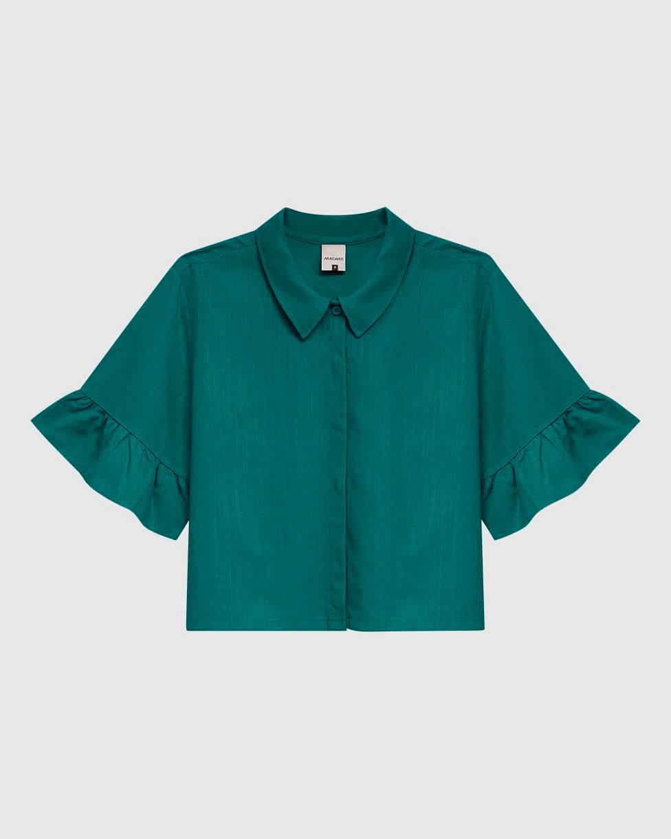 Camisa Cropped Feminina Manga Com Babado Em Viscolinho