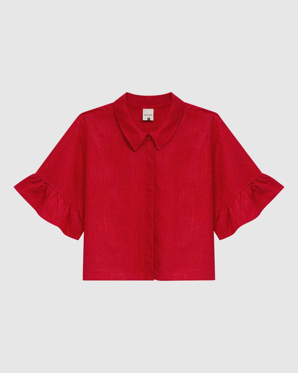 A Camisa Cropped Feminina Manga Com Babado Em Viscolinho combina leveza e estilo para o seu dia a dia. O caimento solto e os babados nas mangas trazem feminilidade, enquanto o toque suave do viscolinho garante conforto para todas as ocasiões.