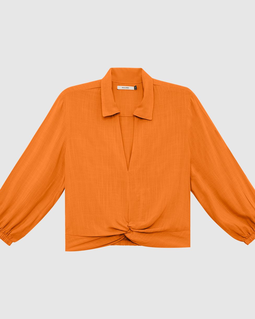 Camisa confeccionada em tecido de viscose. Uma peça elegante e leve para usar na estação, essa camisa se destaca por possuir detalhe de torcido frontal, com gola V aberta e mangas fluídas 7/8. Além disso, o tecido de viscose se destaca por ser maleável e de toque macio, possuindo bom caimento e frescor, sendo ideal para o uso em dias mais quentes. Aposte com calça Wide Leg Malwee e sandália de salto bloco!