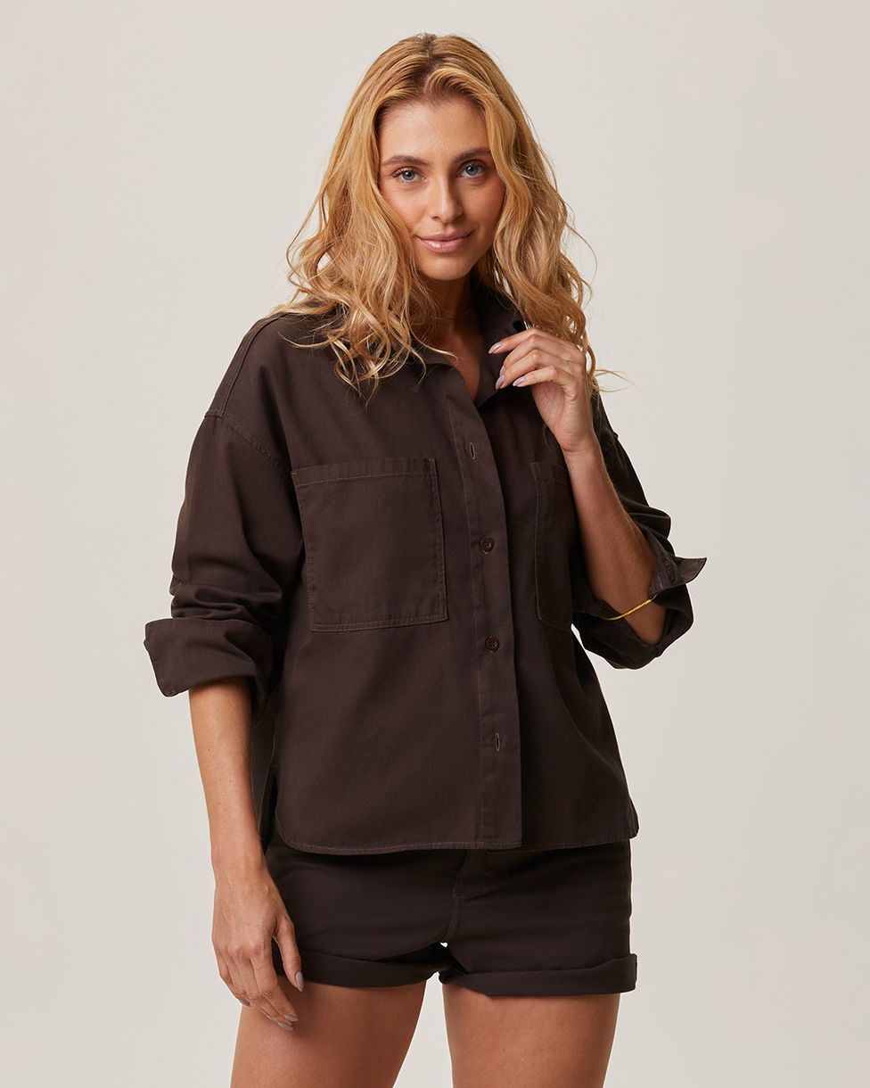 Camisa Feminina Oversized Cropped Em Sarja 100% Algodão