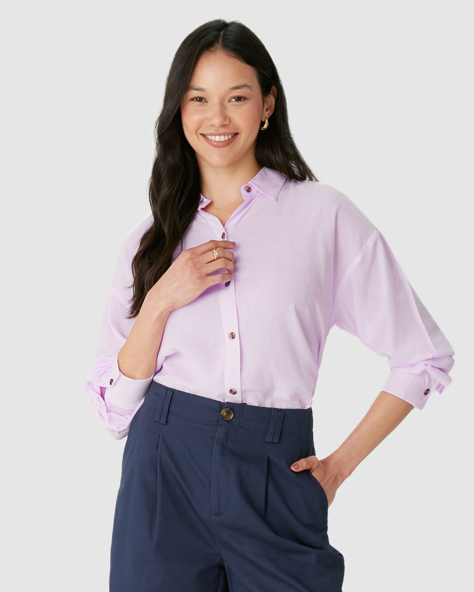 Camisa Feminina Tradicional Abotoamento Frontal Em Viscolinho