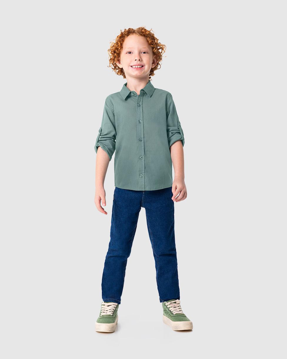 Camisa Infantil Menino Manga Longa Em Tricoline Malwee Kids