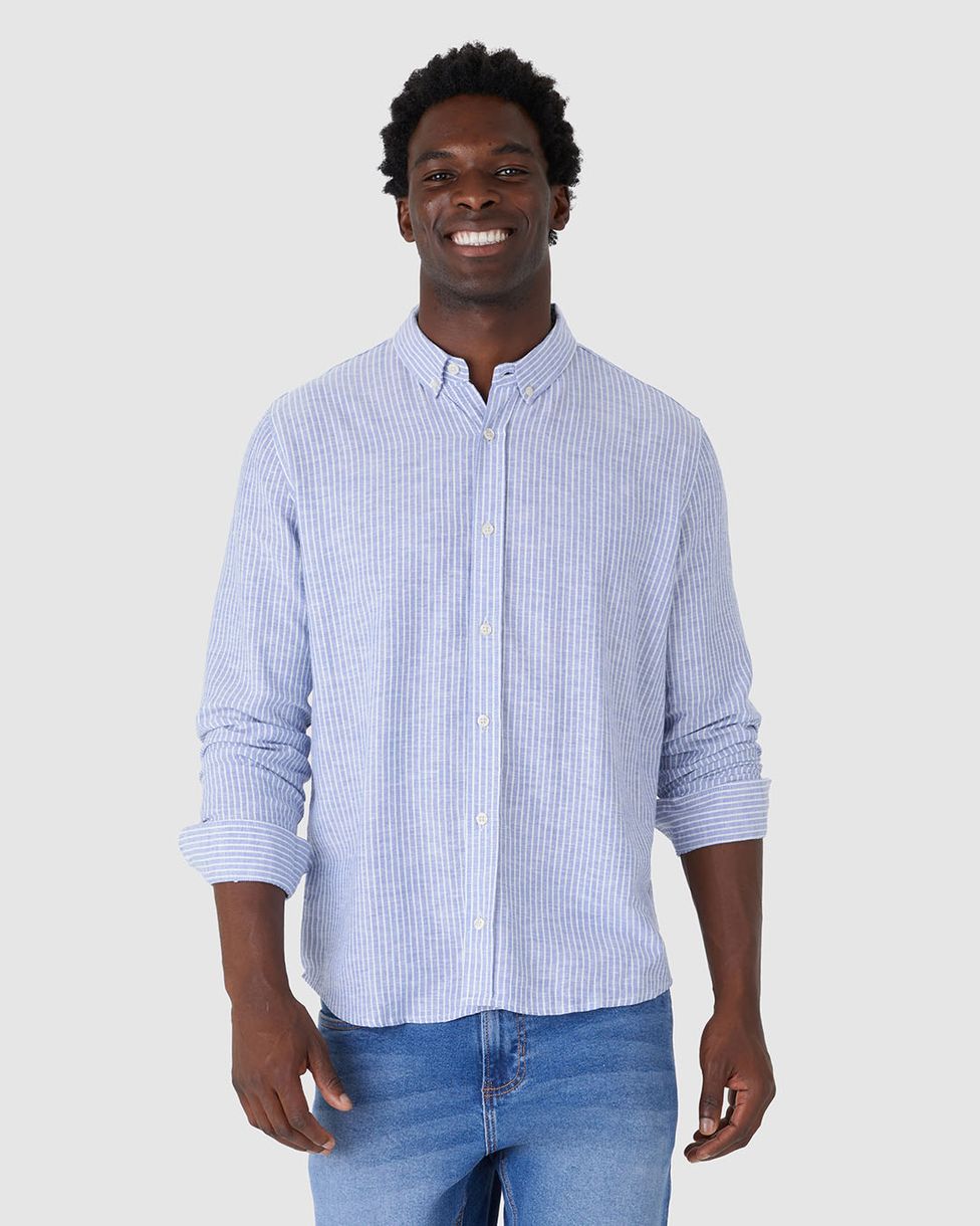 Camisa Masculina Gola Padrão Manga Longa Em Viscolinho